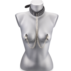 LOVE AND VIBES Collier Cuir BDSM Avec Pinces à Seins