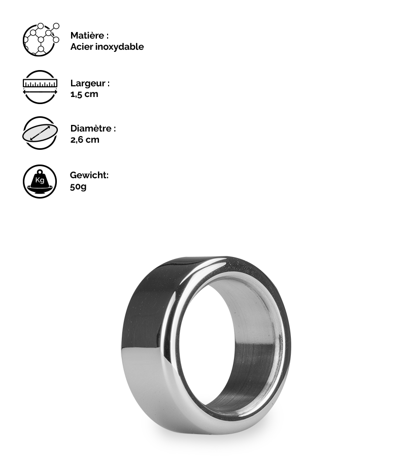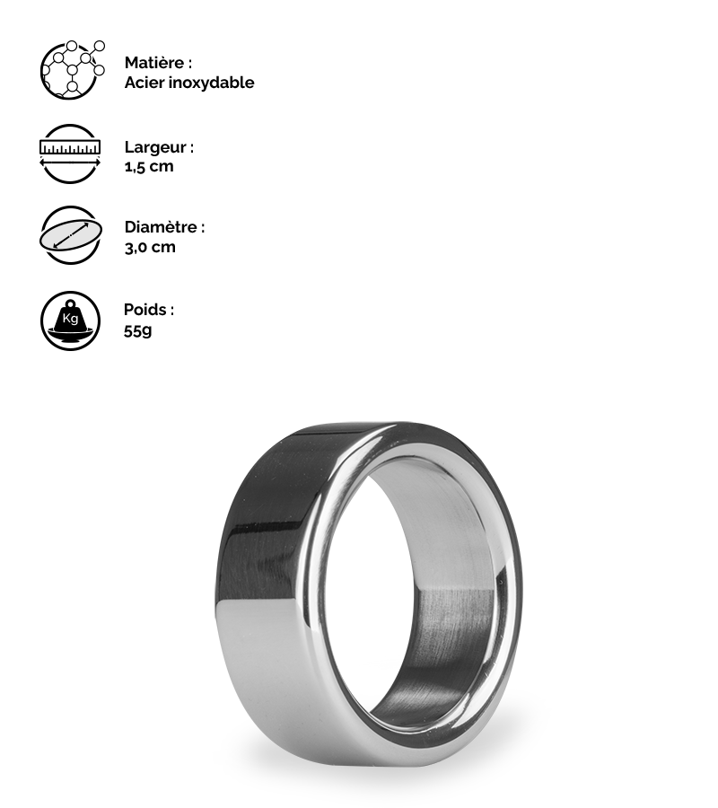 En acier inoxydable, cet anneau non flexible se positionne derrière les testicules, à la base du pénis qu’il viendra comprimer légèrement pour vous offrir des érections plus volumineuses et dures que jamais. Cette action vous aidera aussi à retarder l’éjaculation pour des rapports plus longs et des orgasmes explosifs. Vous pourrez également plonger votre anneau dans de l’eau froide ou chaude et ainsi profiter de nouvelles sensations jouissives. L’anneau cockring Stronger est disponible en trois tailles : S, M et L. Taille S : diamètre de 2,6 cm ; Taille M : diamètre de 2,8 cm ; Taille L : diamètre de 3,0 cm;