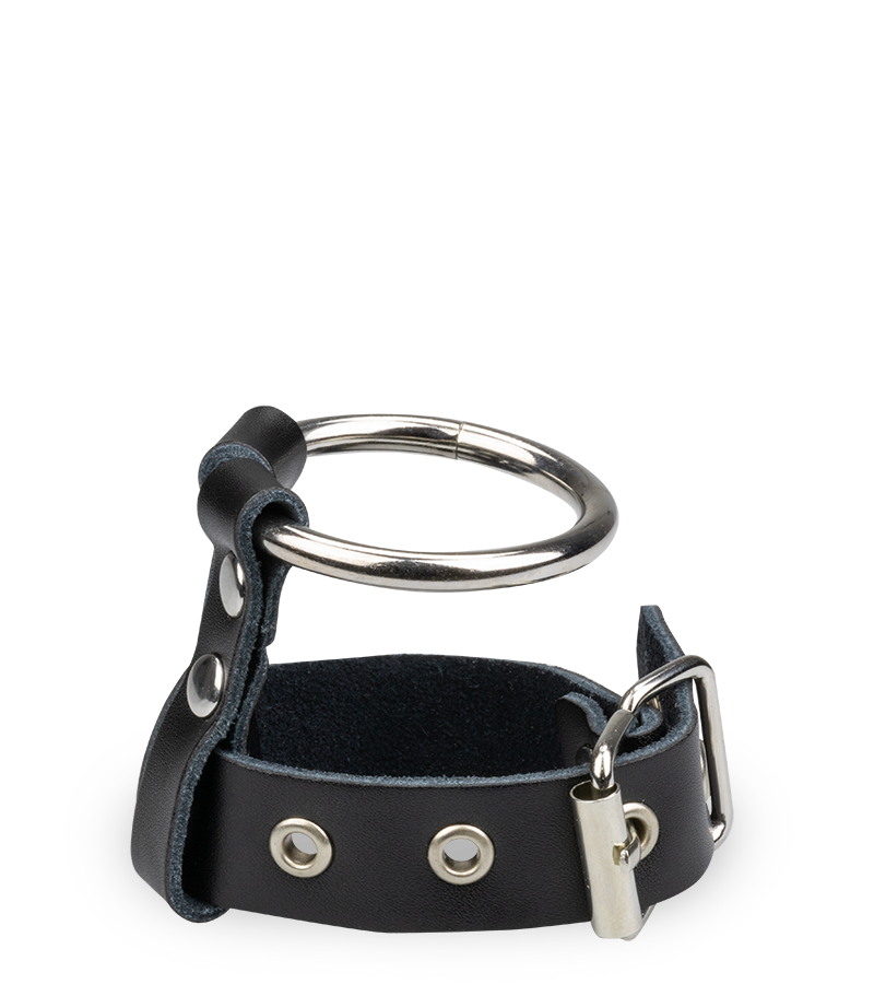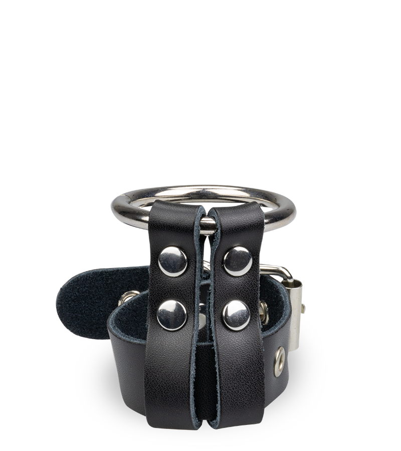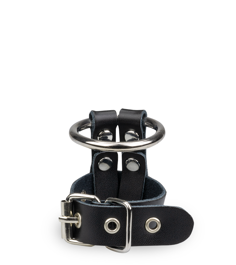 Ce double anneau pénien aux allures BDSM habillera votre intimité de simili cuir et de métal. L’anneau de maintien à positionner derrière les testicules est réglable pour s’adapter à tous les diamètres. L’anneau pénien en métal est non flexible, il possède un diamètre de 3,7 cm et viendra jouer sur votre pression sanguine pour muscler vos érections et augmenter votre endurance sexuelle. De cette façon, vos nuits seront plus longues et torrides que jamais.