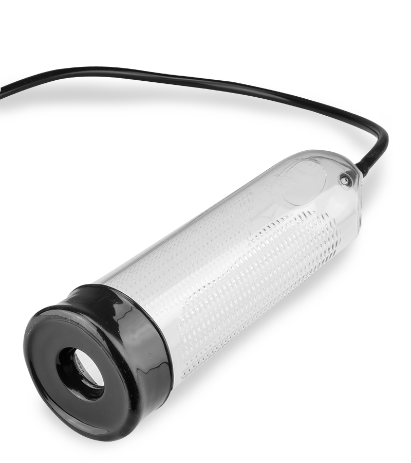 Longue de 24,5 cm pour un diamètre d’insertion extensible allant jusqu’à 5,5 cm, cette pompe à pénis accueille l’anatomie masculine pour un moment d’exception.
