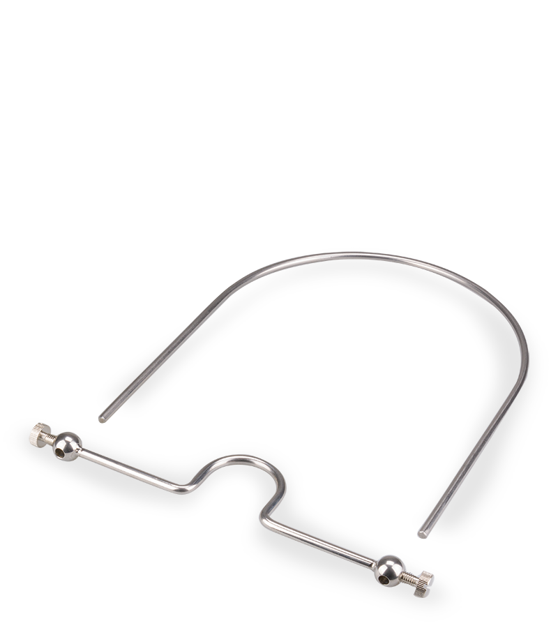 Ce bâillon original est conçu en métal. Il est à placer autour de la tête, la barre interne placée dans la bouche comme un mors de cheval, empêchant ainsi les mouvements de la langue de votre partenaire. Vous pourrez régler à votre convenance le bâillon avec les vis présentes sur les côtés afin de le serrer plus ou moins.