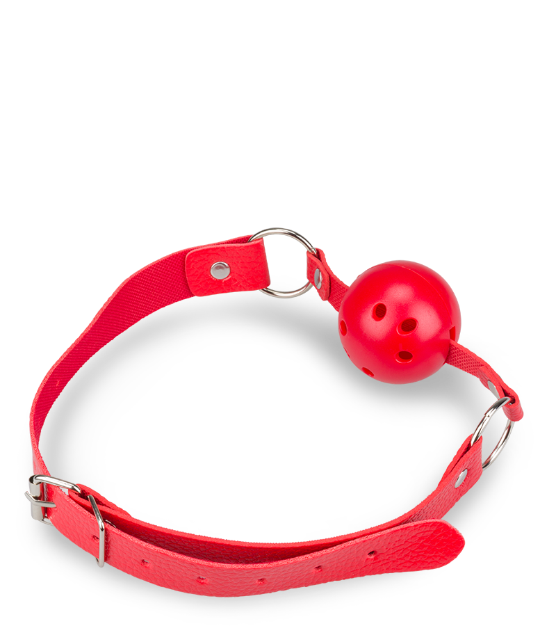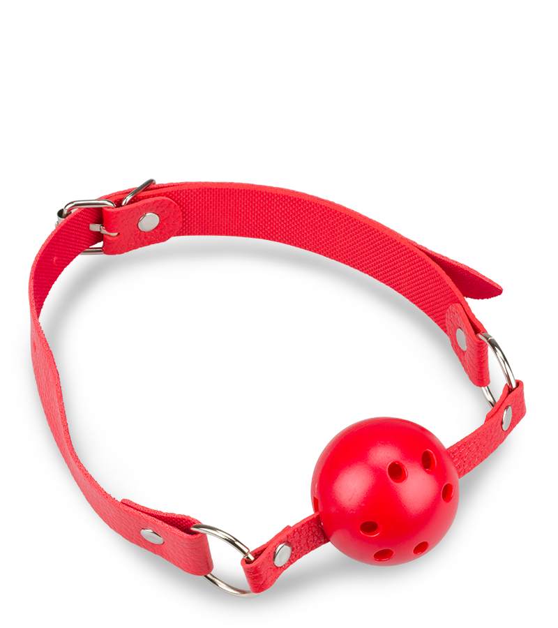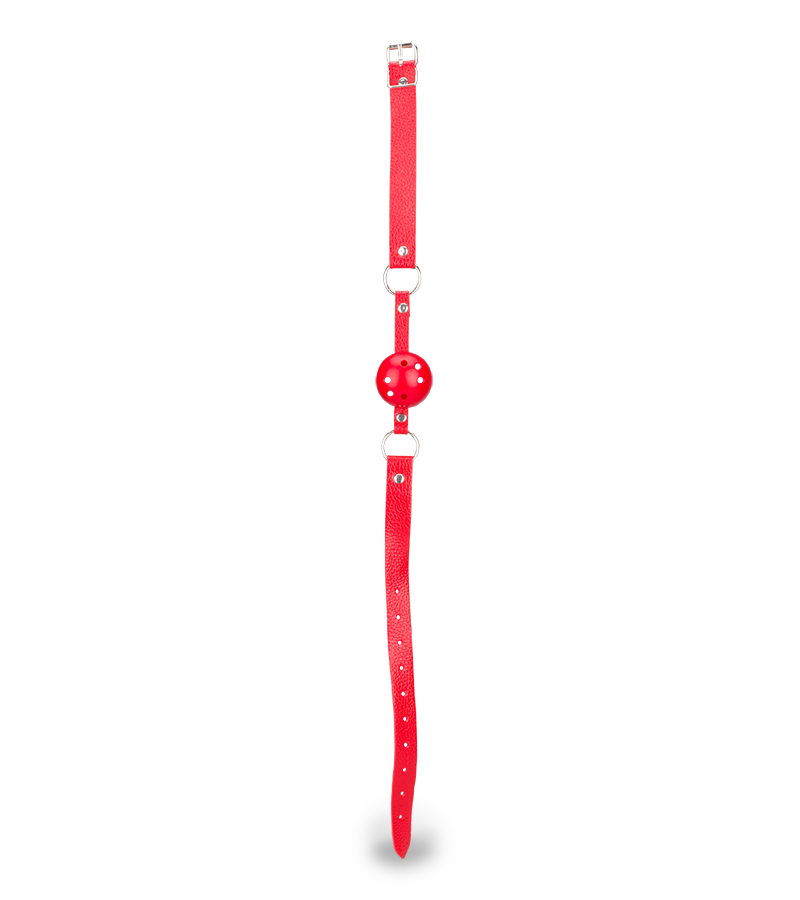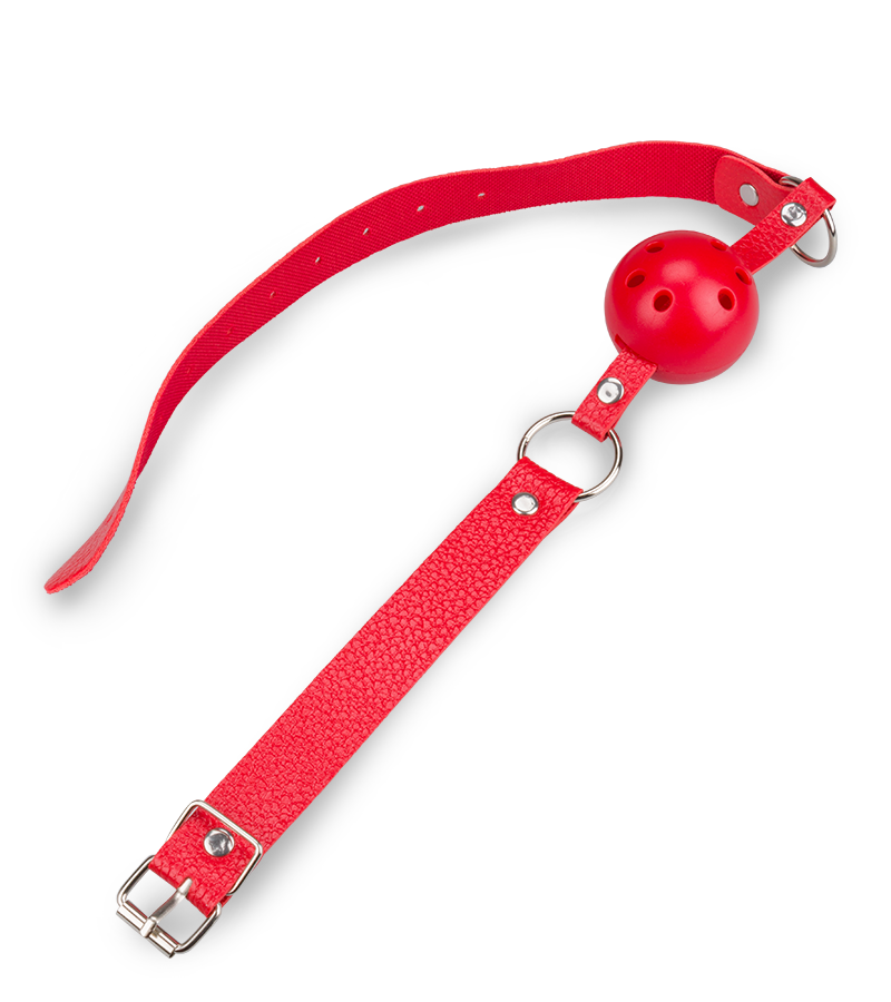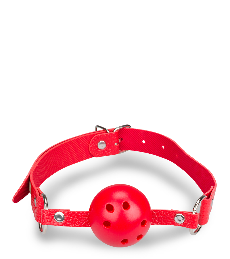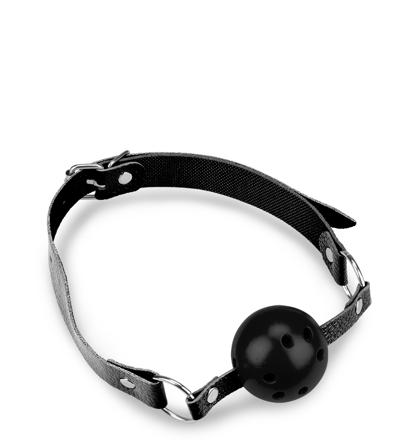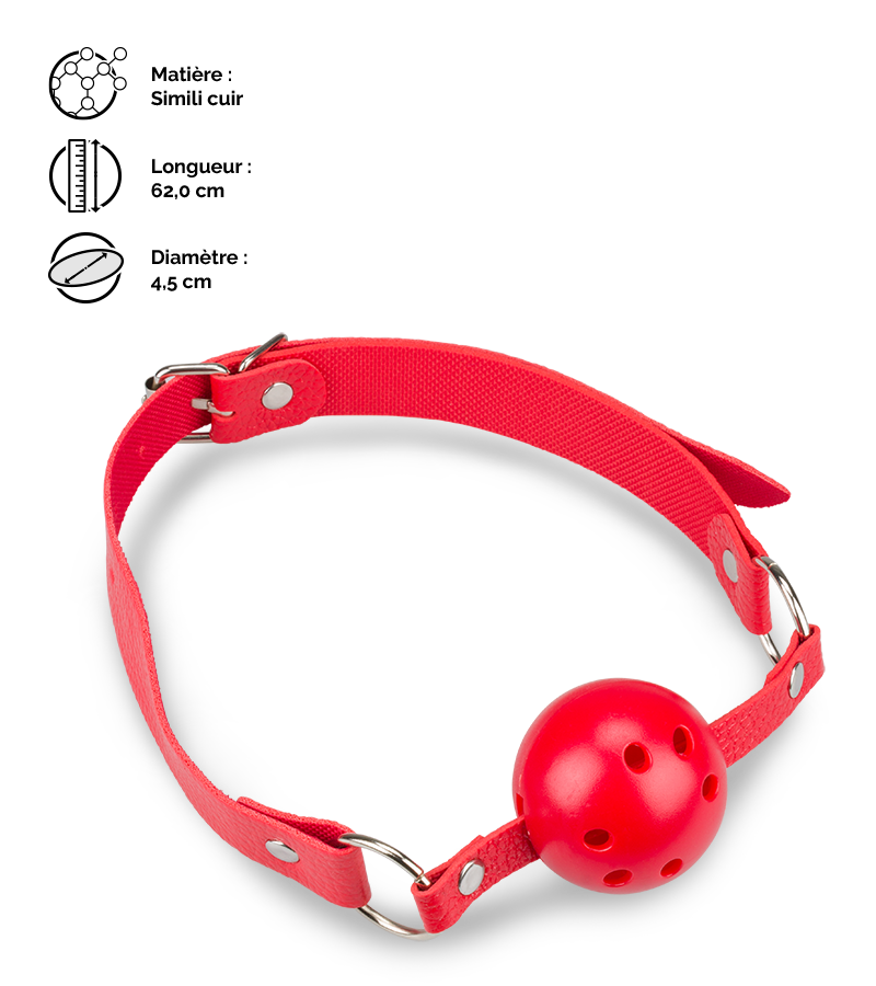 Faites taire votre partenaire de jeux érotiques avec ou sans douceur, en lui imposant le bâillon gag-ball BDSM.