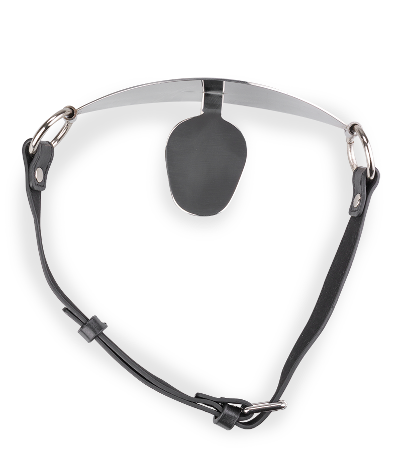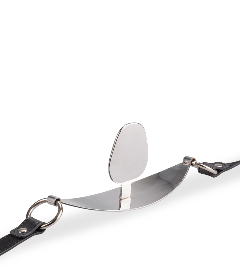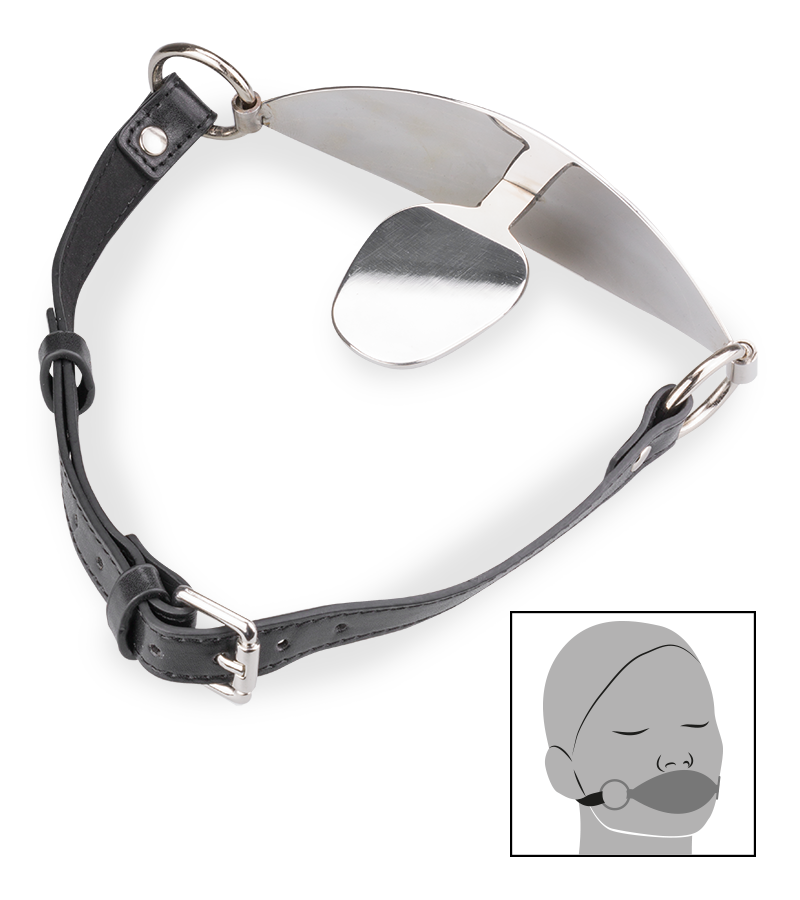 Ce bâillon BDSM a été conçu pour réduire votre partenaire au silence. En attachant les sangles autour de son cou et en plaçant la plaque en métal dans sa bouche, sa langue sera bloquée, l’empêchant ainsi de parler.