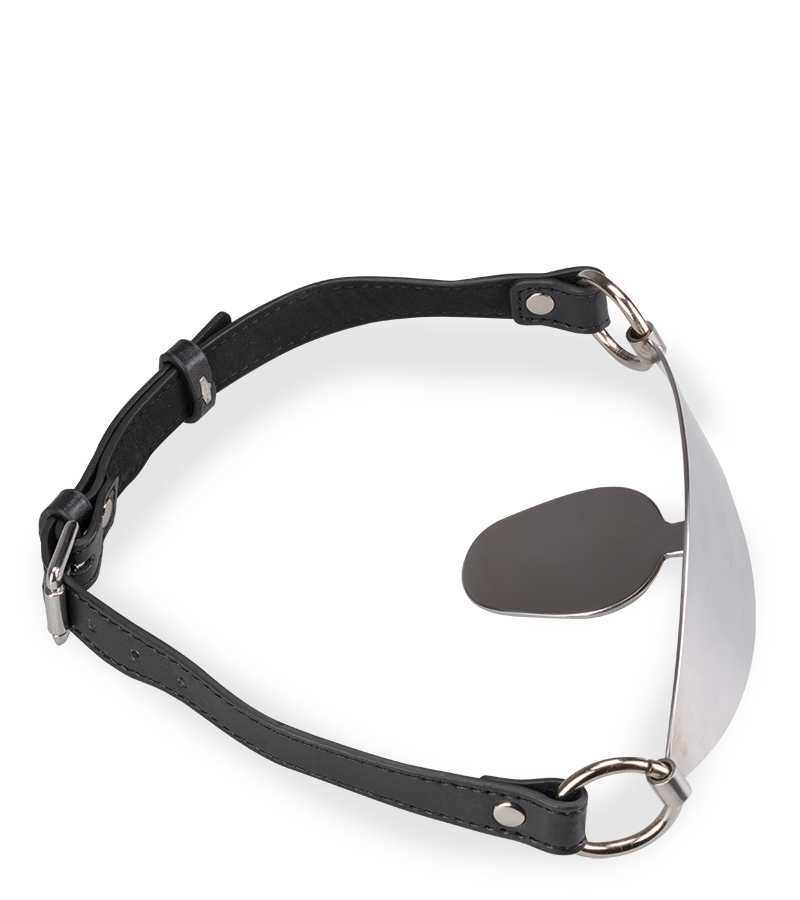 Imposez votre domination avec le bâillon plat en métal et similicuir !