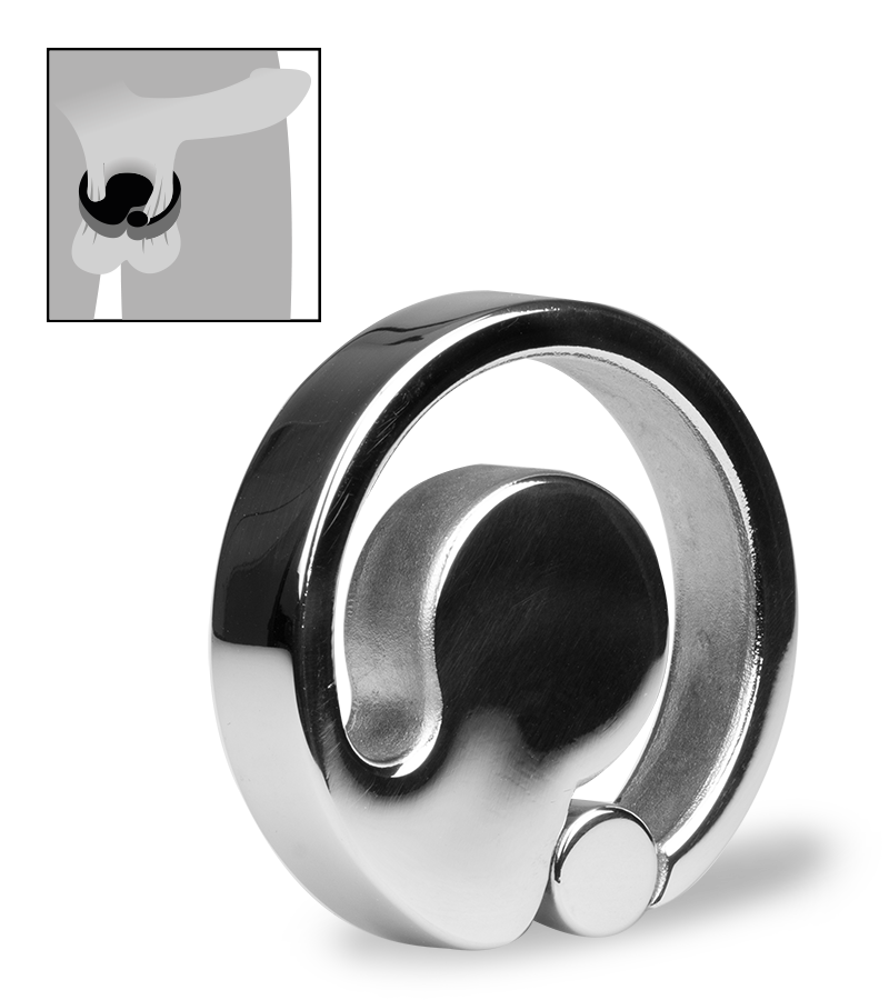 Pour retirer la partie faisant office de fermoir, faites-la simplement glisser sur le côté. Repositionnez-la de la même façon pour refermer le produit. Ce sextoy conçu en acier inoxydable est compatible avec tous les types de lubrifiants. Nettoyez le ballstretcher à l’eau et au savon avant et après chaque usage.