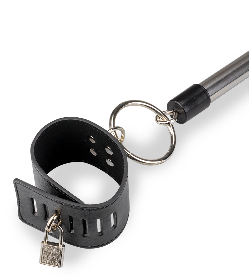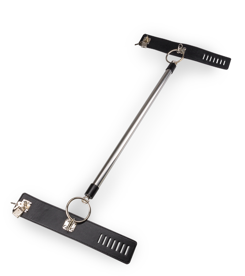 Soumettez votre partenaire avec cette barre de contrainte en métal et simili cuir noir. Cette accessoire BDSM possède 2 entraves en cuir noir et peut tout aussi bien être utilisé pour entraver les poignets que les chevilles : variez les plaisirs avec un seul accessoire. Réglez la largeur des entraves de 19 cm à 26 cm.