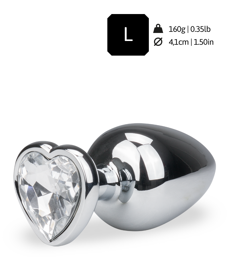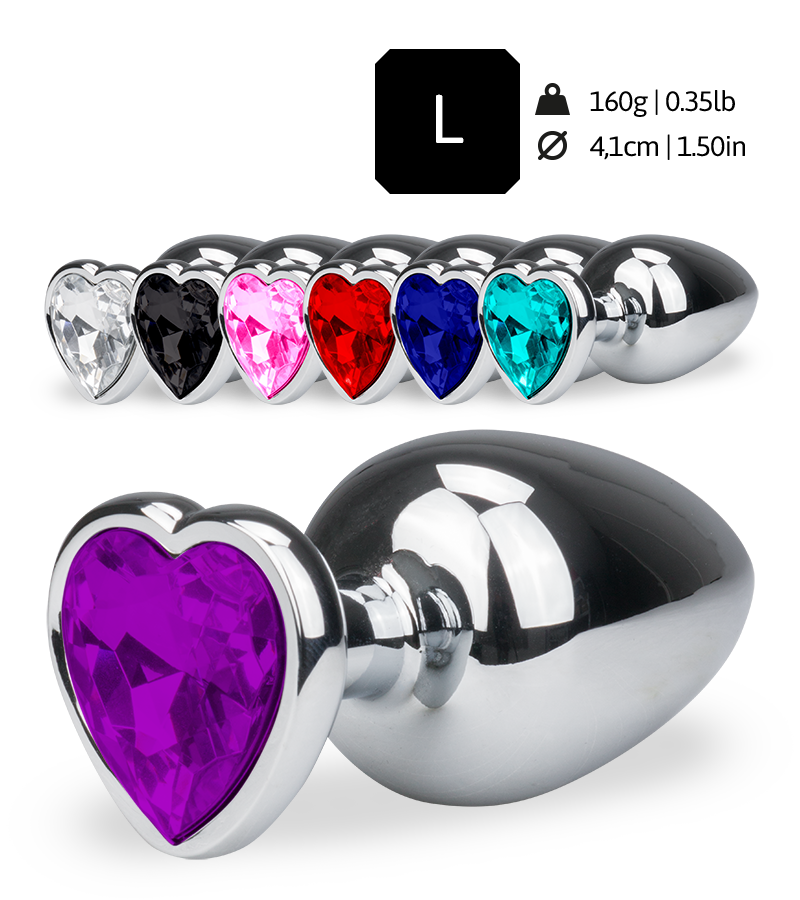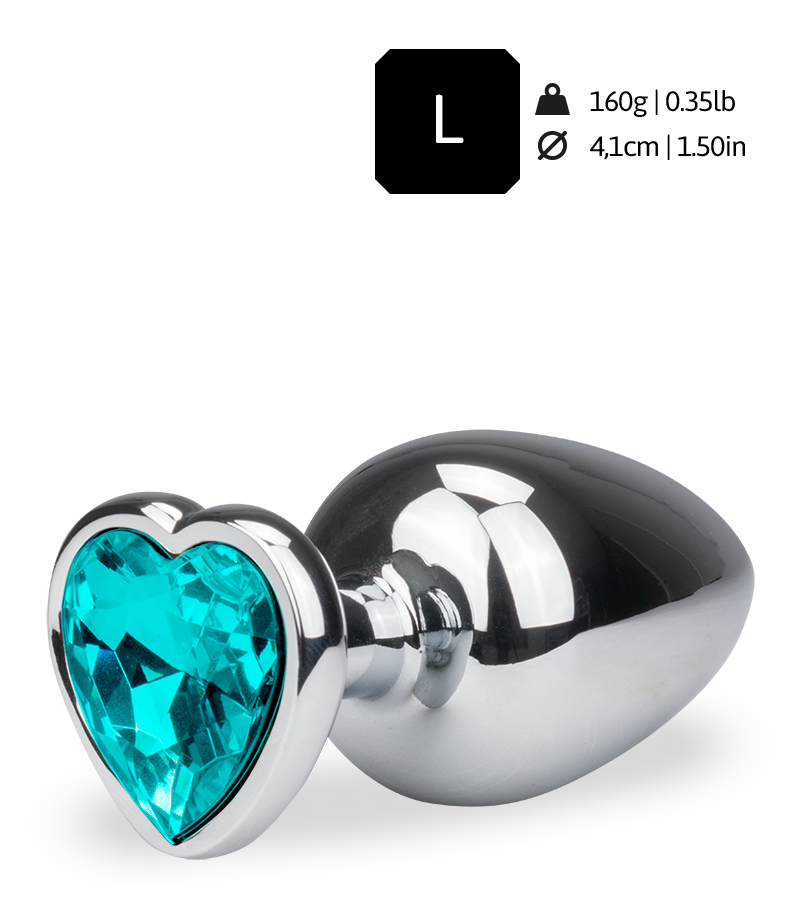 Son grand format de dilatation permet de préparer l’anus à la sodomie, mais également de le porter discrètement puisqu’il reste invisible sous des sous-vêtements. Sa forme d’ogive, grand classique des Rosebuds Diamond, permet de s’enfoncer facilement, grâce à son embout fin légèrement fuselé. Il pénètre facilement et sans douleur dans l’anus. Le corps du Rosebud est ensuite beaucoup plus charnu, pour écarter l’orifice anal et stimuler le plaisir anal. Le joli cœur scintillant situé au bout du rosebud viendra décorer à merveille votre anus. Le rosebud à coeur taille L est proposé avec une longueur de 9,4 cm dont 8,0 cm insérables, 4.1 cm de diamètre, et 160,0 grammes, disponible en 7 couleurs : violet, blanc, noir, rose, rouge, bleu foncé, bleu turquoise.