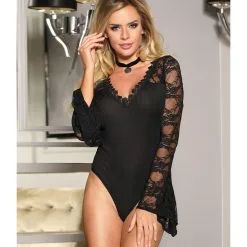 Soyez belle de jour comme de nuit grâce au body noir sexy manches longues !