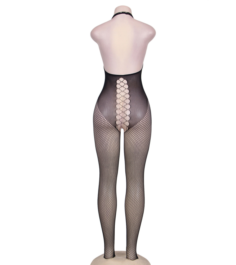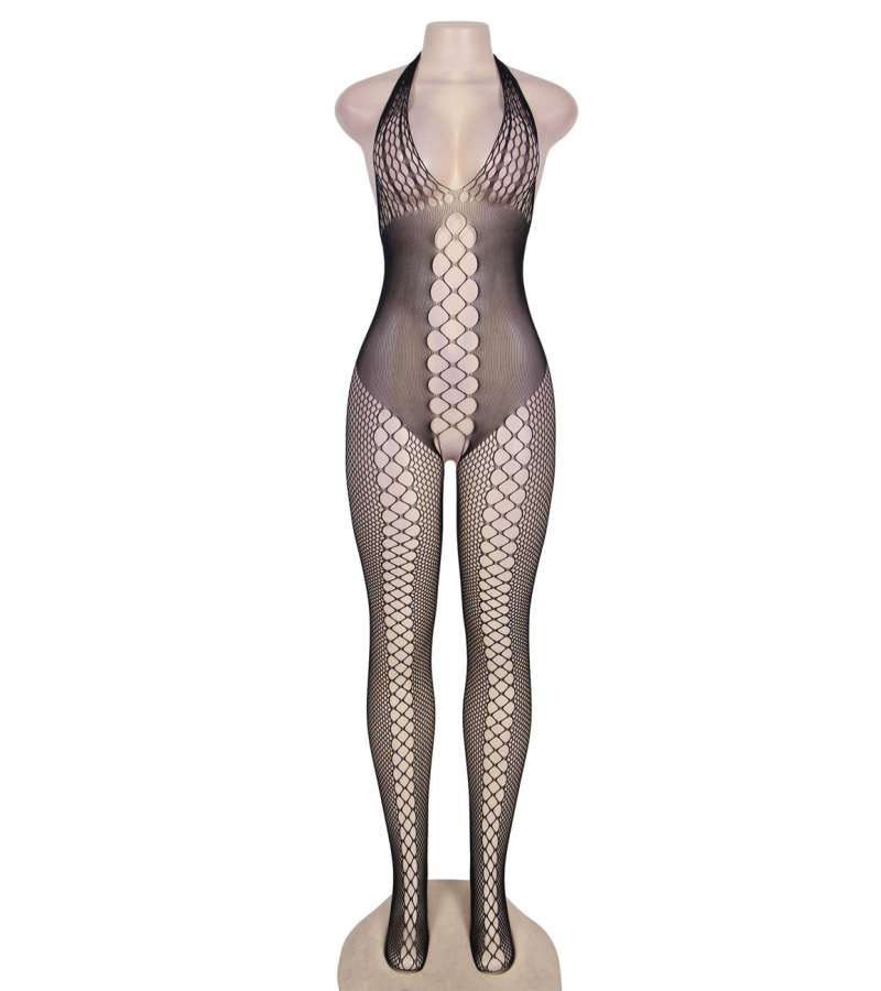 Nul ne pourra vous résister à la vue de ce bodystocking hautement sexy. Cette tenue érotique joue sur la taille de ses mailles pour sublimer les zones les plus sexy de votre corps. Les mailles sont fines sur certaines parties et plus écartées sur certaines zones : fessier, poitrine, nombril. Ce body sexy est composé de multiples trous dans le dos qui descendent jusqu’à dévoiler vos fesses. Une légère ouverture à l’entre-jambes, à l’avant comme à l’arrière, permet de garder cette tenue sexy pendant l’acte. Sans manches, cette combinaison sexy dévoile vos épaules pour un effet sexy renforcé.