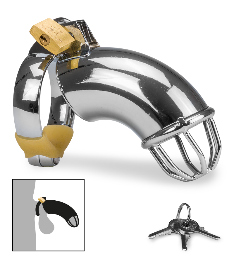 Cette cage sera parfaite pour réaliser vos fantasmes de soumission les plus fous. Elle emprisonnera votre intimité ou celle de votre soumis et empêchera les érections complètes et les rapports sexuels de toutes sortes grâce à sa forme courbée. Son extrémité ouverte permettra au prisonnier d’uriner ou de stimuler le bout du sexe sans avoir forcément besoin de sortir de la cage.