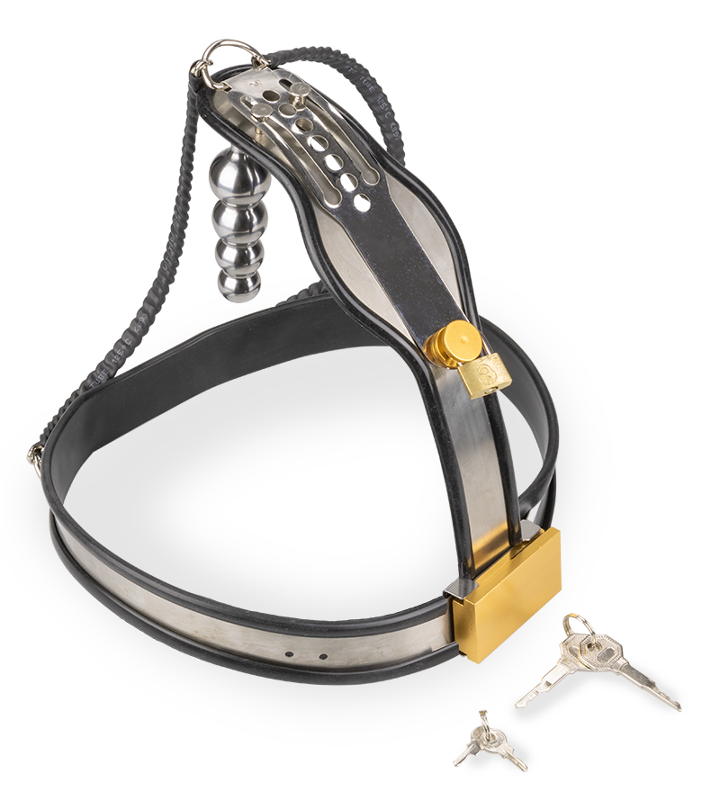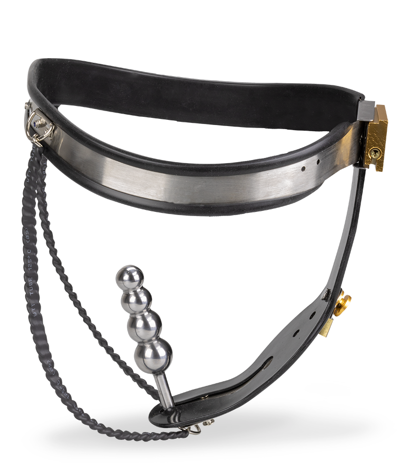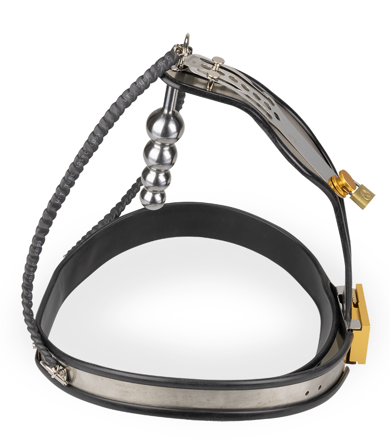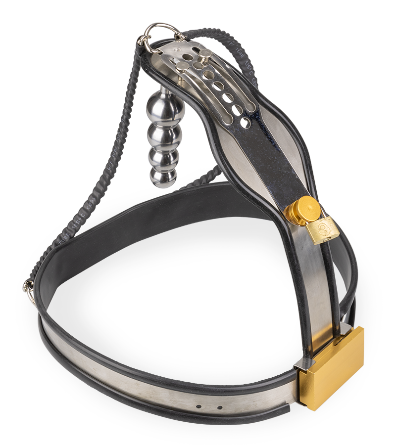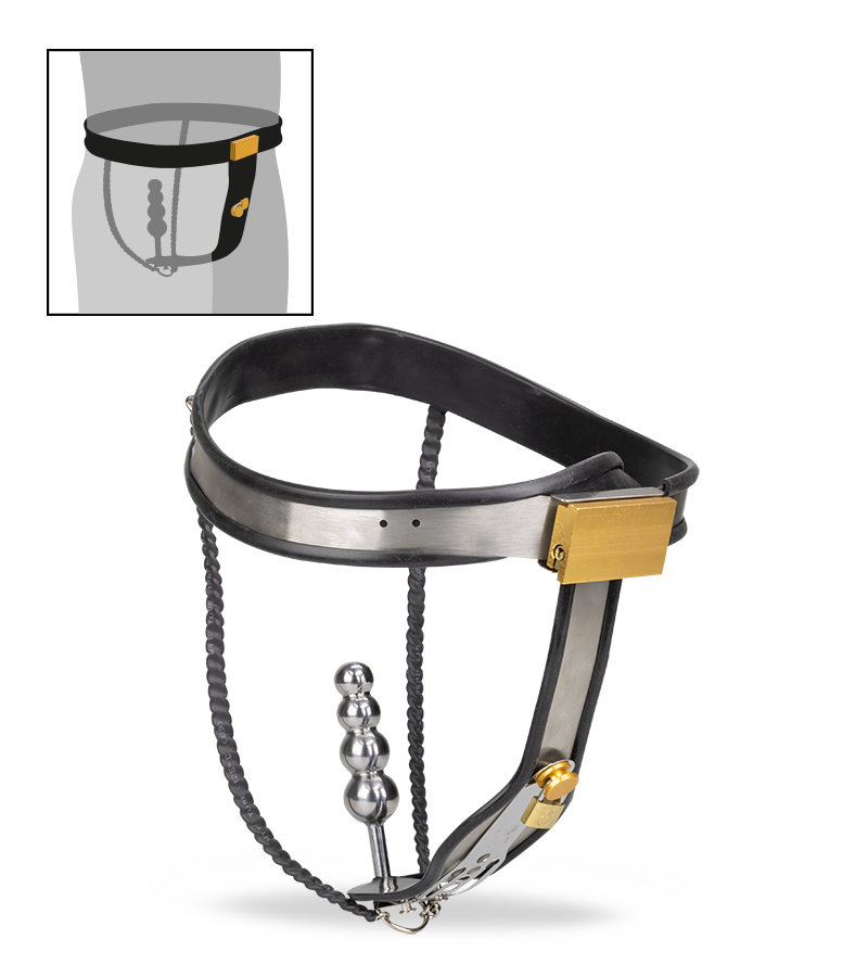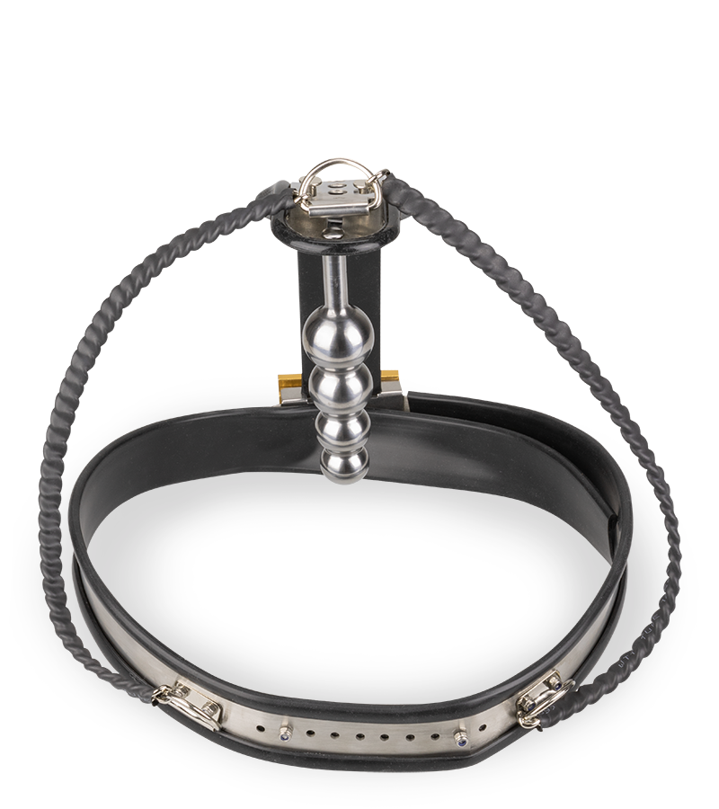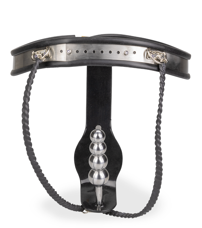 Dotée d’un plug anal et d’une plaque à l’avant qui recouvre toute votre intimité, elle vous empêchera toute autre pénétration ou caresse. En laissant les clés à votre partenaire, vous pourrez découvrir une excitation et une frustration sans pareils ! Grâce à plusieurs niveaux ajustables facilement, la ceinture pourra convenir à de nombreuses morphologies. Pour un look bondage total, elle est fabriquée en métal et les parties contre votre peau sont protégées d’une couche de latex noir. Pour compléter le tout, le plug anal attaché dont le diamètre s’épaissit petit à petit avec ses 4 boules vous offrira un massage intense lors de chacun de vos mouvements.
