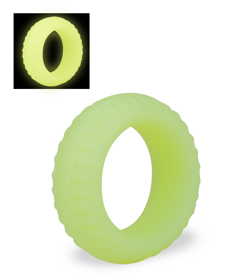 Amusez-vous dans le noir avec le cockring phosphorescent en silicone médical Tavala !
