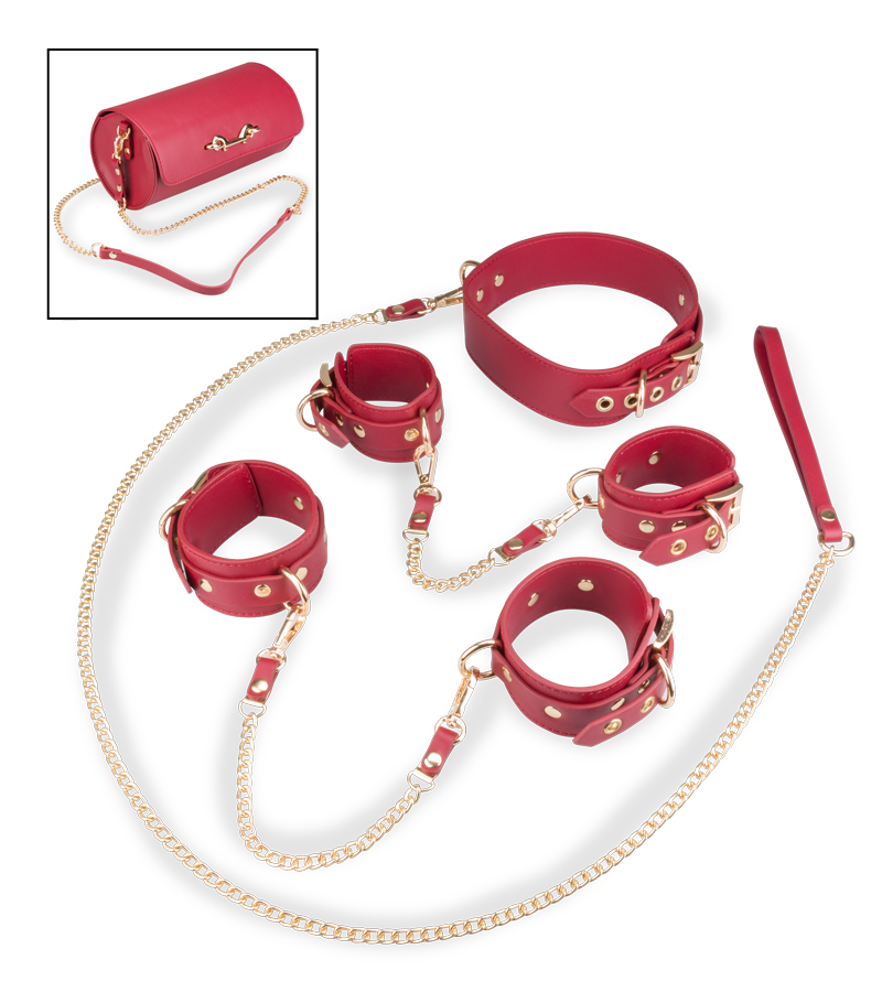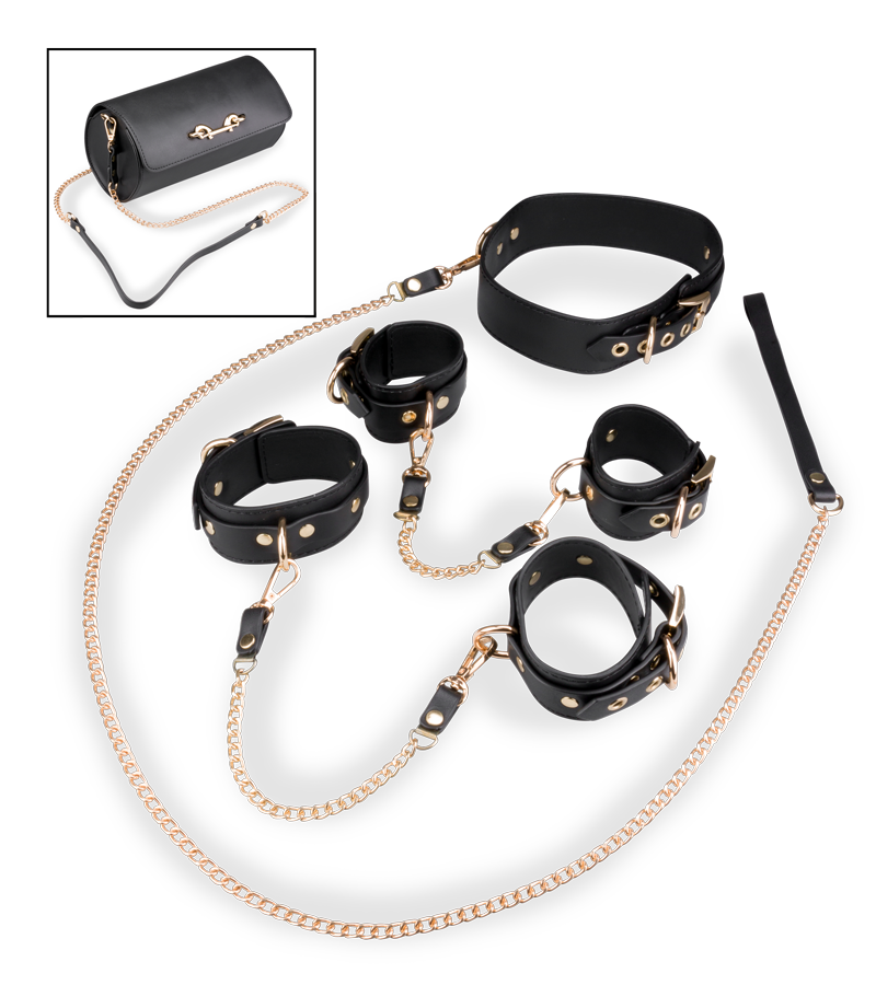 Ce kit BDSM s’adresse aux personnes souhaitant découvrir les joies du bondage soft. Tous les accessoires sont conçus dans un similicuir très qualitatif et d’une douceur incomparable. Une attention particulière a été portée dans la réalisation des finitions pour un rendu des plus esthétiques. De plus, un sac de transport très assorti et élégant est fourni pour vous permettre de ranger et transporter vos accessoires avec discrétion.