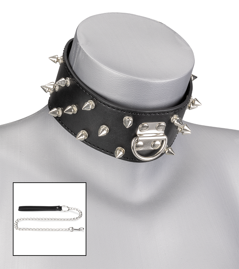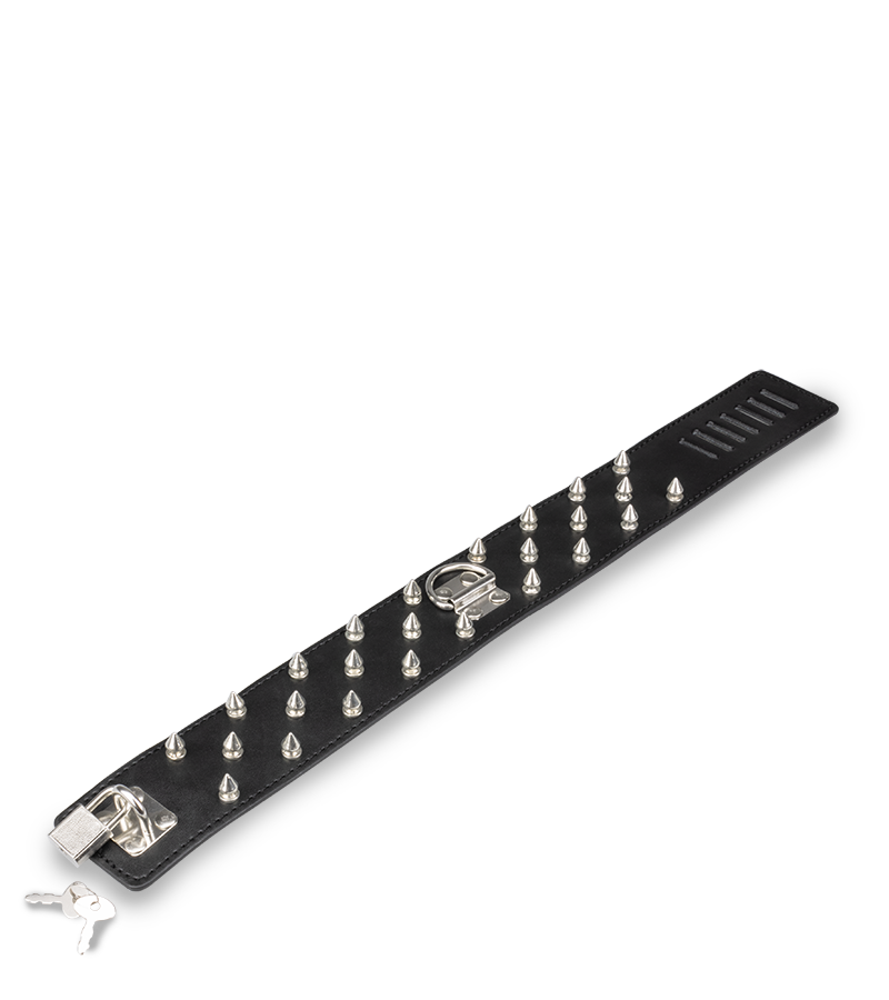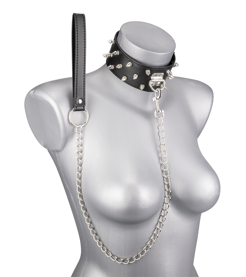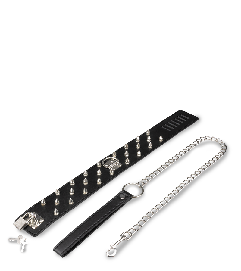 Ce collier de soumission en similicuir avec pointes BDSM et sa laisse chaine en métal vous permettront de tenir le soumis ou la soumise et de vous laisser aller à vos châtiments bondage préférés. Nous vous conseillons d’ajouter un accessoire bondage, des menottes ou des contraintes, une fois le cadenas verrouillé.