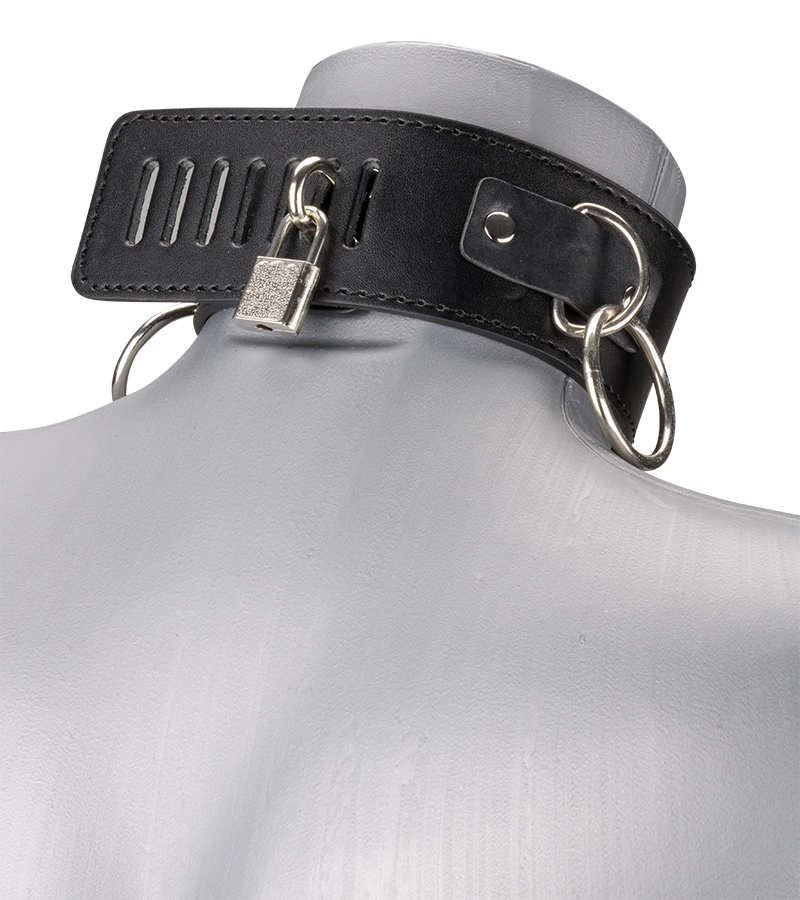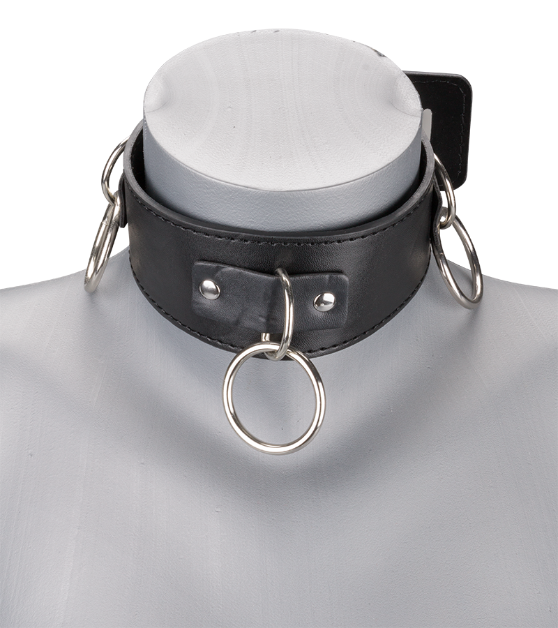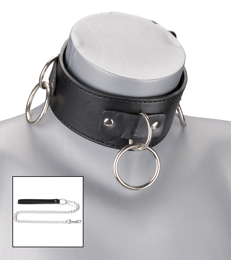 Osez de nouveaux jeux avec le collier cuir BDSM 3 anneaux + laisse !