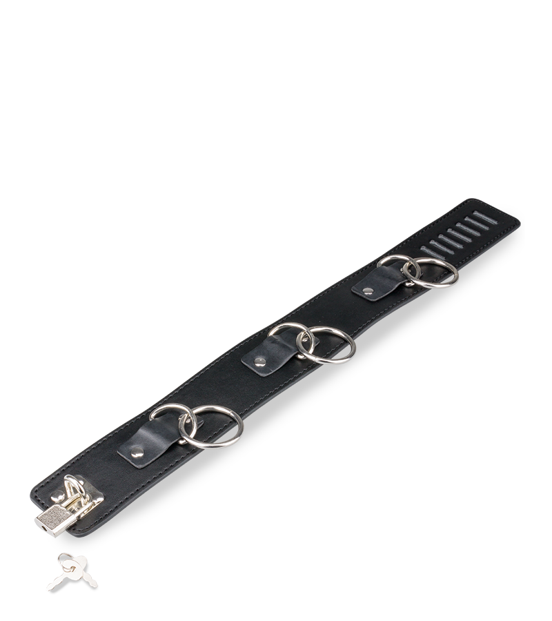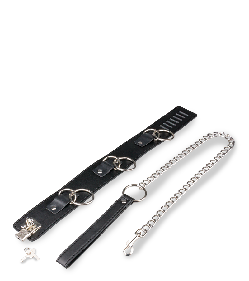 Cet accessoire est parfait pour soumettre votre partenaire d’une façon des plus excitantes. Conçu en simili cuir et en métal, il possède trois anneaux pour venir y attacher sa laisse fournie. Réglable, il s’adaptera parfaitement à votre cou et sera très agréable à porter.