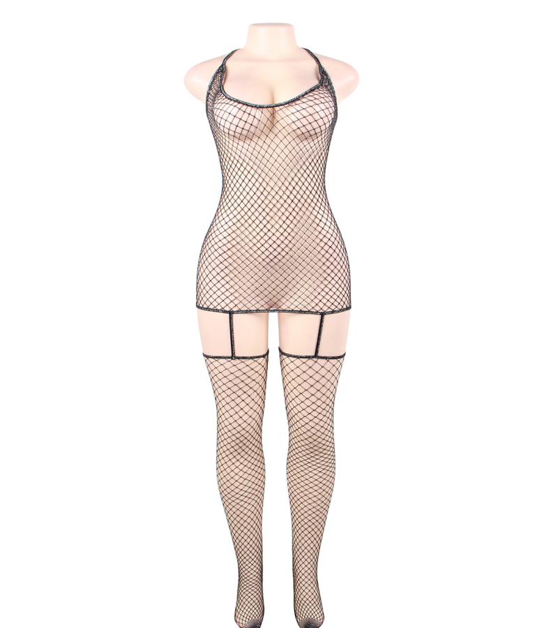 Donnez à votre partenaire un boost de tonus sexuel. En effet, aucun homme ne peut résister à cette tenue sexy dont les mailles brillent de mille feux pour que vous soyez la star de la soirée. Cette tenue en résille à fines mailles est très légère et ne cache aucune de vos formes. Elle saura même s’adapter facilement pour les sublimer. Munie d’un large décolleté et d’un faux-semblant de porte-jarretelles, cette combinaison sexy multiplie les atouts à votre disposition pour réchauffer la température lors de vos nuits torrides. Sans manches, cette tenue est parfaite pour stimuler votre imagination sexuelle. L’ensemble de cette combinaison est décoré de paillettes sur les mailles qui vous rendront irrésistibles pour votre partenaire qui aura des étoiles plein les yeux à la vue de cette tenue coquine. À l’arrière, une seule bretelle verticale très fine en plein centre du dos rejoint le tour de cou. Les collants en résille scintillants sont reliés au body par des fines bretelles à effet porte-jarretelles. Cette combinaison donne l’impression de ne rien porter, très légère, elle n’irrite pas et paraît presque invisible, vous vous sentirez presque nue sous cette combinaison sexy, pourtant vous porterez une tenue qui a le don de particulièrement exciter votre partenaire sexuel. String non inclus. Existe en différentes tailles (en fonction des stocks disponibles).