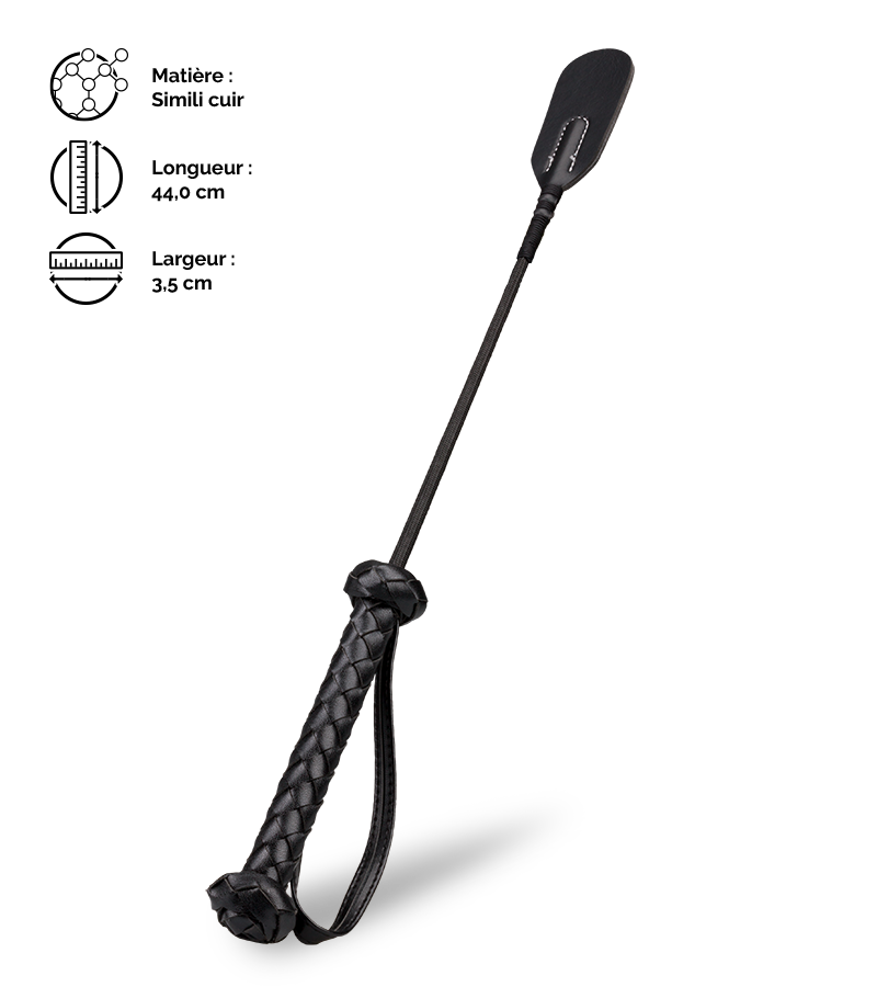 Que ce soit pour corriger votre dominé avec une fessée, une petite tape ou tout simplement pour faire monter le désir en le caressant, cette cravache est l’accessoire BDSM parfait. Elle est constituée d’une extrémité, d’une tige rigide et d’une poignée. Ses éléments sont en similicuir pour une meilleure durabilité et une esthétique sans pareil. Sa poignée tiendra parfaitement dans votre main et sa dragonne vous permettra de la garder au poignet lors d’autres stimulations par exemple.