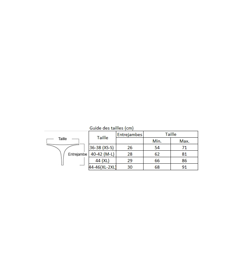 La culotte transparente avec accroche jarretelles est un sous-vêtement coquin auquel peuvent être raccrochés des bas grâce à des accroche-jarretelles pourvues sur la culotte. Ce panty sexy disponible en rouge et noir, deux couleurs à fort potentiel érotique, est composé de résille à fines mailles sur les flancs et sur les fesses. C’est ainsi une transparence partielle qui laissera apparaître vos formes sexy. Seul le pubis est recouvert de tissu épais. Elle est composée à 95% de polyester et 5% d’elasthanne.
