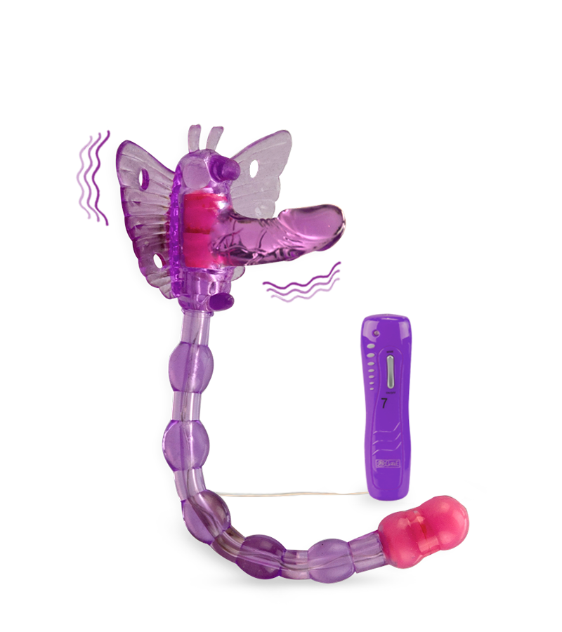 Vous allez pouvoir profiter d’une triple stimulation des plus orgasmique avec cette culotte vibrante triple plaisir et ses 7 vitesses. Ce sextoy exceptionnel se compose de trois parties, toutes pensées pour exciter vos zones érogènes. La culotte vibrante est équipée d’un papillon dont les ailes et les antennes viendront titiller votre clitoris. Dans le même temps, on retrouve une partie gode mesurant 5,5 cm de long pour un diamètre de 2,2 cm. Ainsi, le clitoris et le vagin pourront être sollicités en même temps, pour votre plus grand plaisir. Stimulez une troisième zone érogène avec le chapelet anal d’une longueur de 19,0 cm pour un diamètre de 2,2 cm.