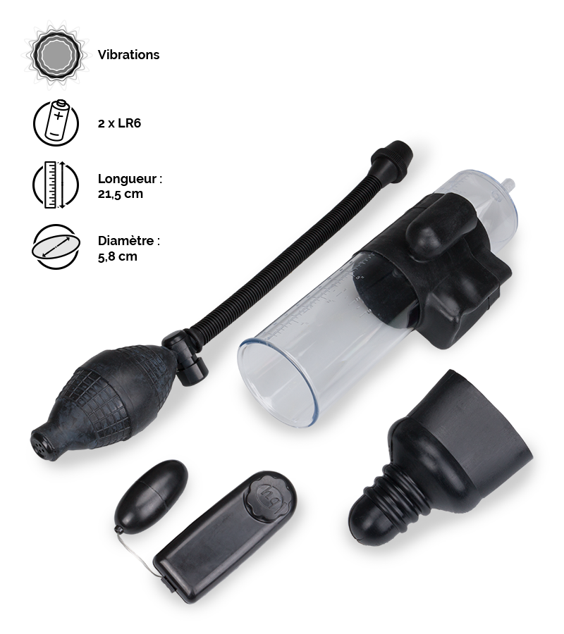 Glissez-le dans l’insert noir puis pressez la pompe… Le sextoy pour homme aspire peu à peu votre pénis pour une puissante succion. Le vide d’air s’effectue autour de votre membre allant jusqu’à augmenter l’afflux de sang dans votre sexe. Il se gonfle alors de plaisir dans la longueur et la largeur. En parallèle, les secousses réveillent votre intimité dont l’intensité se contrôle depuis la télécommande filaire. Aspirations et vibrations se mettent en accord pour titiller votre pénis. Sa longueur totale est de 23,2 cm , son diamètre de 5,8 cm, son diamètre d’insertion de 5,3 cm et sa profondeur d’insertion est quant à elle de 21,0 cm.