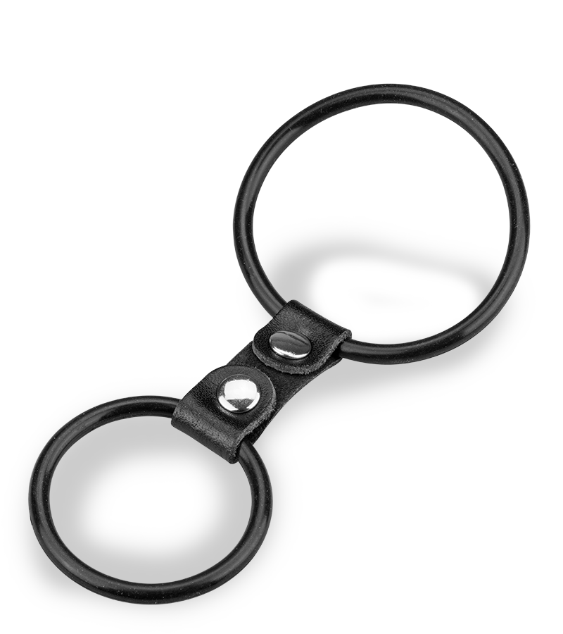 Ce double anneau cockring similicuir et silicone est parfait pour enserrer les testicules et la base du pénis. Ainsi placé, cet anneau vous procurera de nouvelles et délicieuses sensations. Il vous permettra d’obtenir une puissante érection et de retarder vos éjaculations. L’ensemble du sextoy est de 12,4 cm. Le diamètre interne et externe de chaque anneau est extensible.