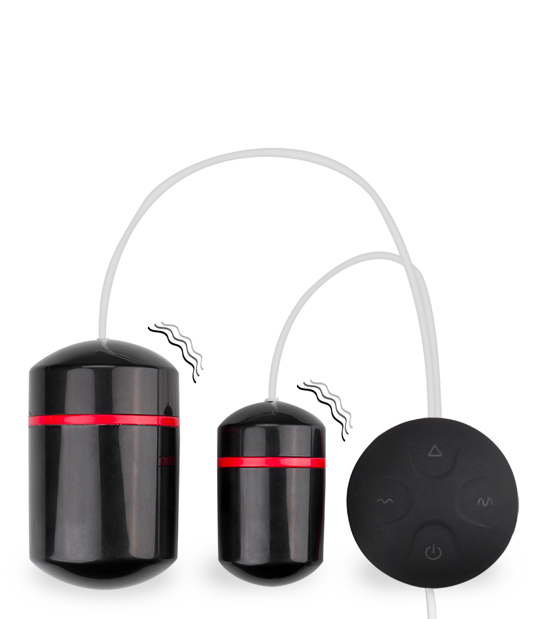 Cet accessoire composé de deux œufs de dimensions différentes délivre de très puissantes vibrations à activer et sélectionner depuis une télécommande filaire.
