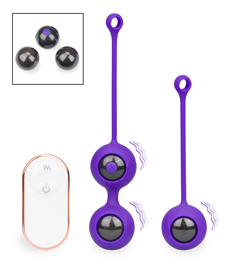 PlacĂ©es dans une gaine en silicone des plus doux, ces boules seront très confortables en vous. Deux d’entre-elles ont une bille interne mobile pour vous faire travailler le pĂ©rinĂ©e efficacement et la troisième possède un moteur vibrant tĂ©lĂ©commandĂ© qui vous amènera d’agrĂ©ables sensations. Grâce aux deux tailles diffĂ©rentes (une boule et deux boules), le poids de celles-ci varie et vous permettra d’entrainer la zone pĂ©rinĂ©ale Ă©tape par Ă©tape, Ă votre rythme, avec les exercices de Kegel.