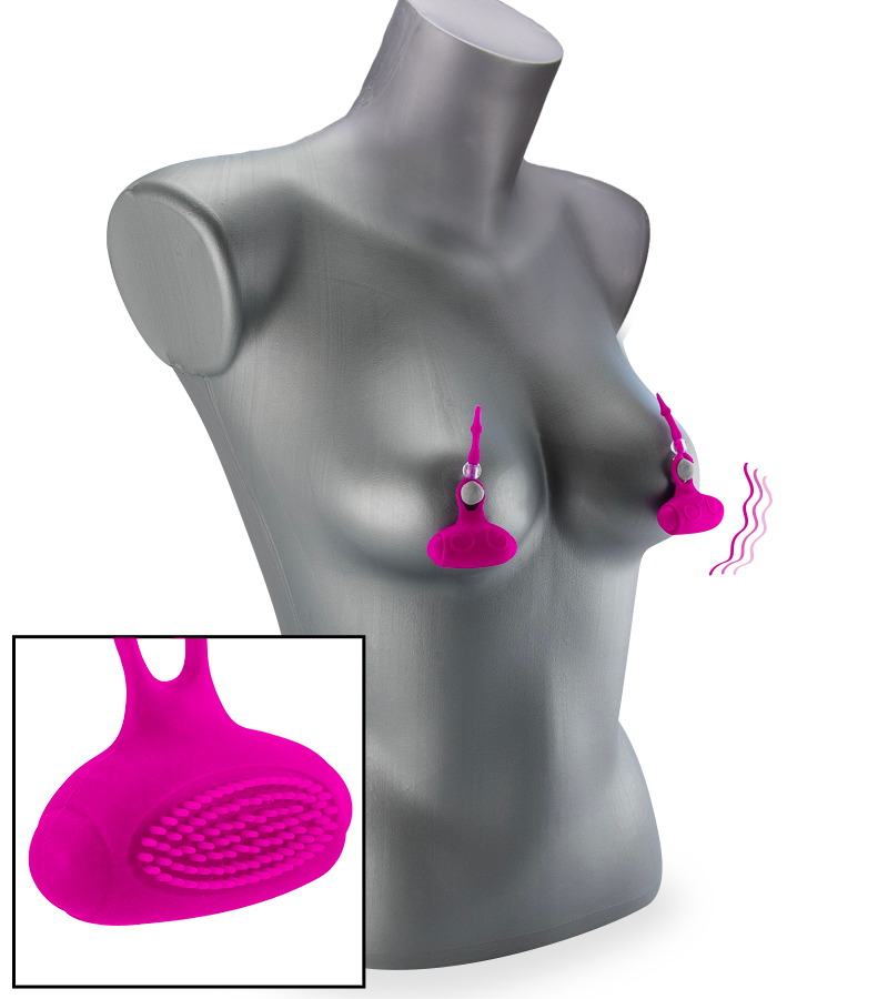 Réglables, elles s’adaptent à vos tétons grâce à la perle transparente qui peut se baisser et se monter pour un maintien parfait. Appuyez sur le côté et sentez les vibrations stimuler vos tétons, vos mamelons et votre poitrine toute entière.