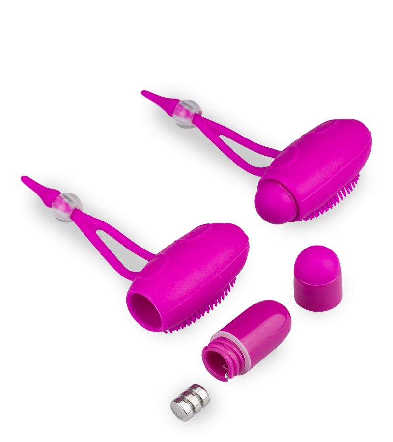 Retirez les oeufs vibrants des gaines en silicone avant de nettoyer les gaines et utilisez un toy cleaner adapté au silicone entre chaque utilisation de vos pinces à seins. Retrouvez ces produits en option et dans la section « Bien-être » de notre site.