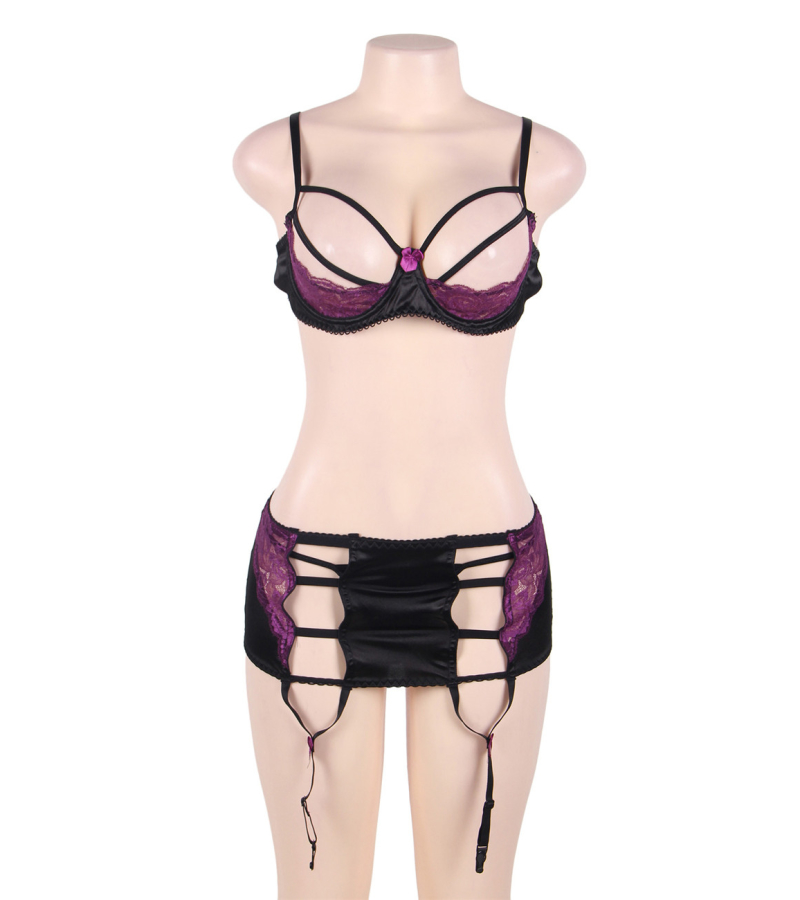 L’ensemble de lingerie cache-seins est une lingerie 3 pièces qui possède de nombreux atouts coquins. L’ensemble sexy se compose d’un string, d’un corset et d’un soutien-gorge. Les zones de tissu noir Ă l’aspect soyeux sont dĂ©corĂ©es de dentelle sur l’aine et en contrebas des seins sur le soutien-gorge. Le soutien-gorge et le corset de cet ensemble sont constituĂ©s de lacet qui dĂ©couvrent notamment les seins. En effet, une fois cette tenue portĂ©e, ce ne seront que deux petits lacets qui viendront cacher votre poitrine. Ils s’adapteront Ă la taille et la forme de vos seins pour les soutenir et les embellir. Disponible en grande taille (en fonction des stocks disponibles).