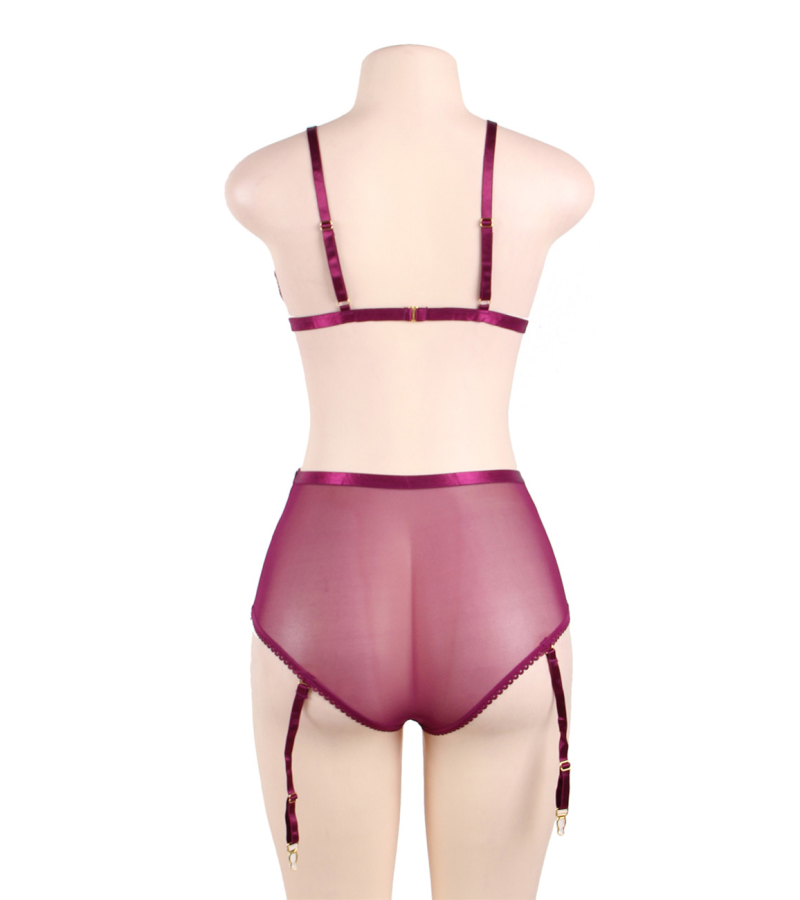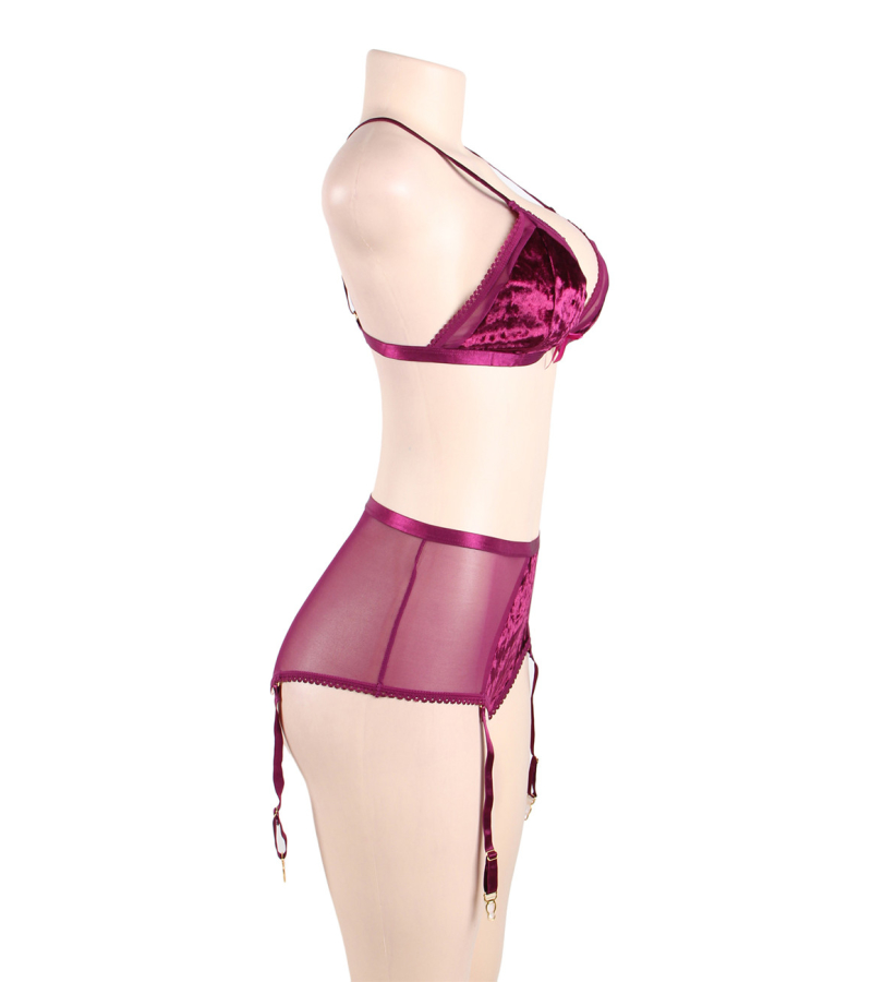 Soyez élégante et sensuelle en portant cet ensemble lingerie sexy en velours violet !