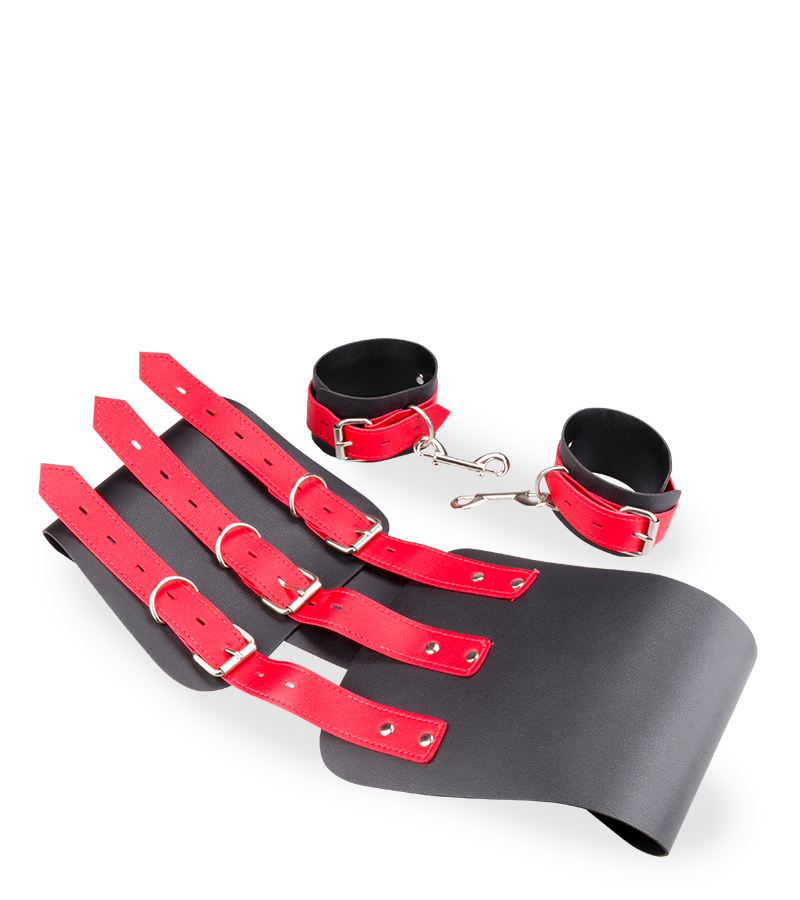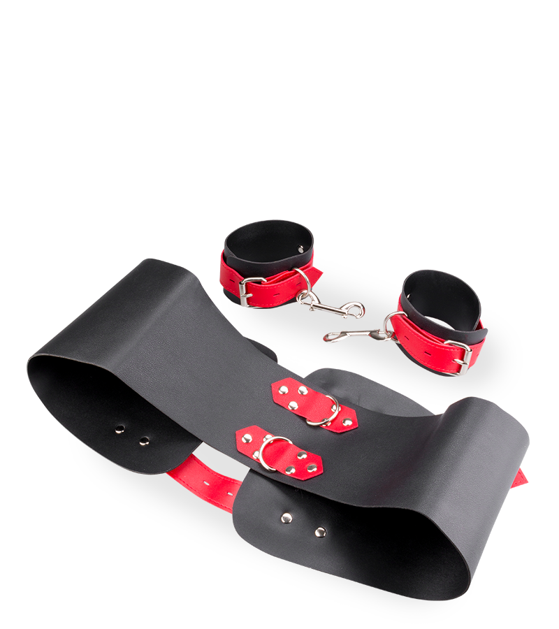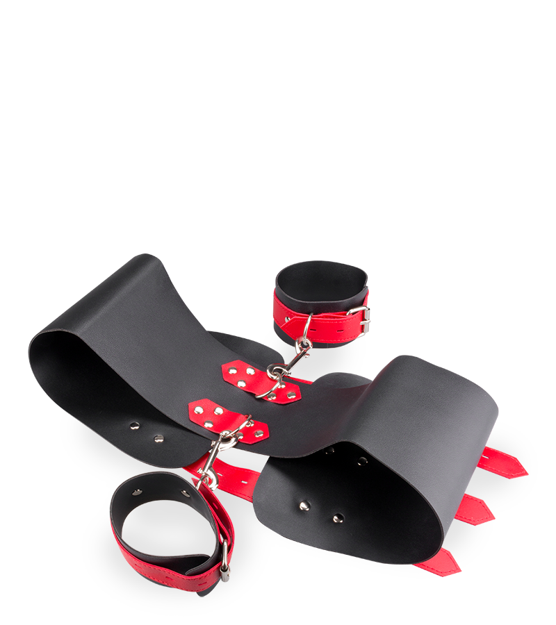 Limitez les mouvements de votre soumis grâce aux entraves en similicuir hanches poignets !