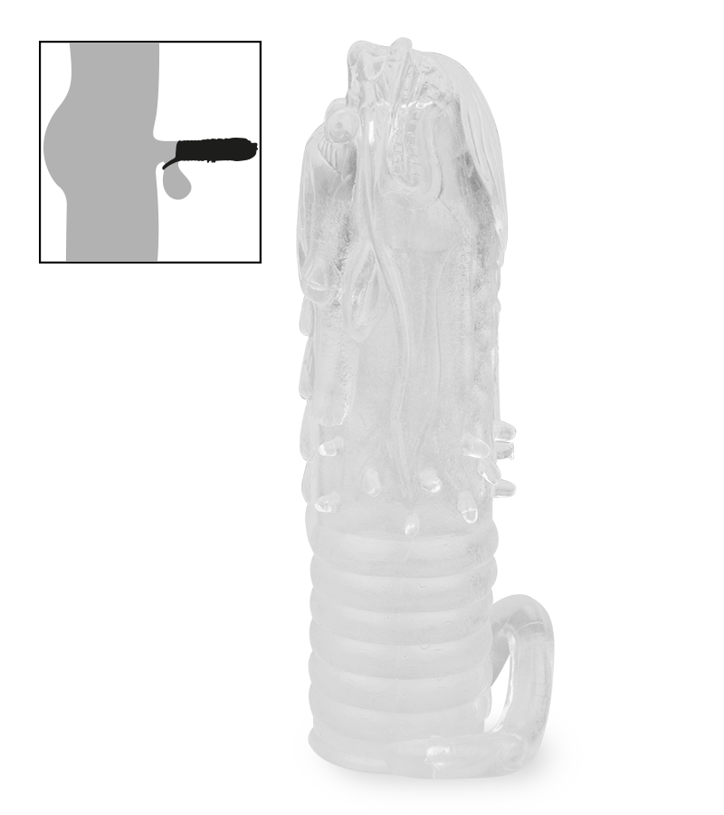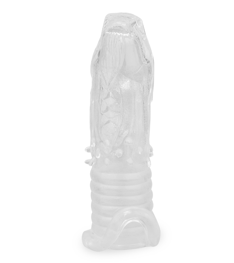 Cet étui pénien apporte une petite rallonge à votre sexe en largeur comme en profondeur. Avec ses nombreux reliefs, cette gaine a tous les atouts pour enflammer votre plaisir et celui de votre partenaire. Elle tiendra parfaitement sur votre intimité grâce à son anneau testiculaire.