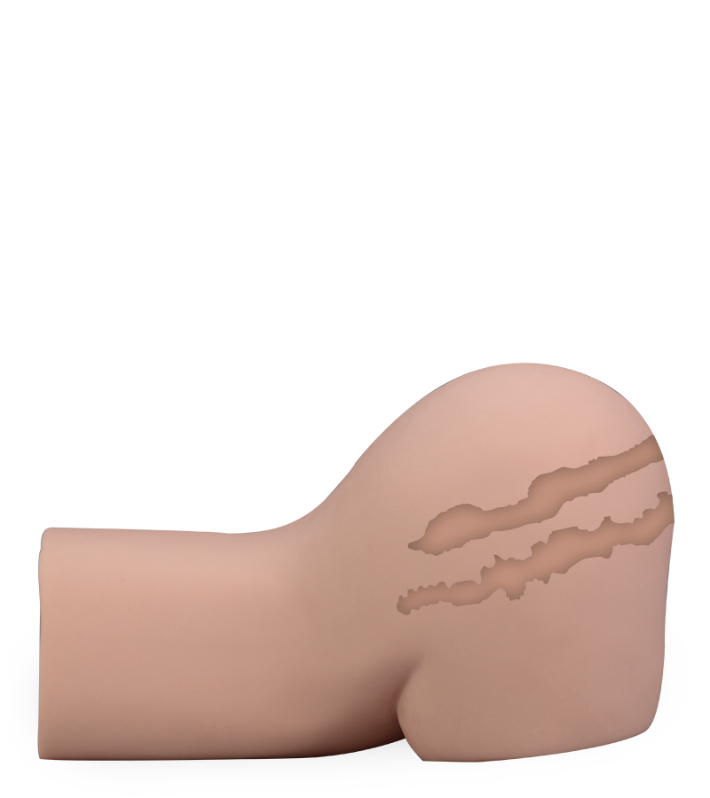 Le fessier Ninon mesure 35,0 cm de long pour 26,5 cm de large et 20,0 cm de haut. Le vagin est profond de 18,0 cm et l’anus de 16,0 cm.