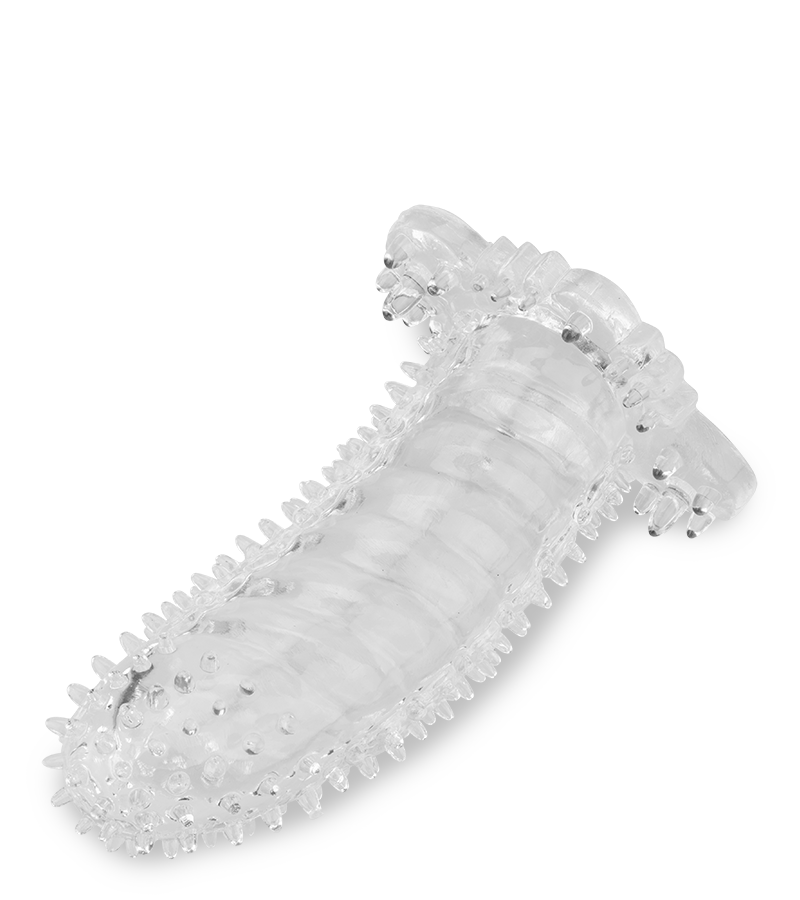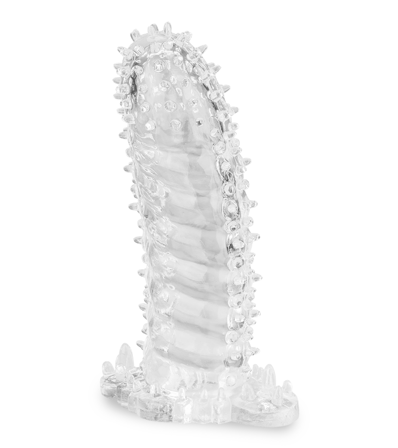 Extensible, cette gaine transparente a pour mission de titiller vos zones érogènes et ainsi décupler le plaisir et la complicité des 2 partenaires. Votre sexe paraîtra plus long et plus large grâce à cet extendeur gaine dont les nombreux picots, présents tout le long, masseront l’intimité. En la portant, vous saurez contrôler votre plaisir. Elle se placera par-dessus de votre sexe en érection, ce qui empêchera la stimulation de votre gland, une zone sensible. Vous retarderez ainsi l’éjaculation et maintiendrez votre érection pour de longs coïts. Son design a pour effet de masser les 2 partenaires. Grâce à sa transparence, vous observerez votre sexe au travers tandis que les picots viendront renforcer le massage intime.