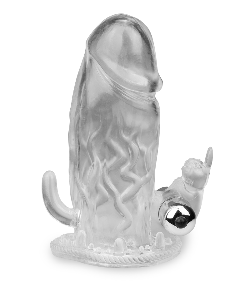 Cette gaine en silicone vous permettra tout d’abord d’augmenter la taille et le diamètre de votre sexe en ajoutant de la matière tout en conservant les reliefs et détails d’un véritable pénis. Elle vous permettra également de pimenter votre vie de couple en ajoutant à votre partenaire des sensations délicieuses et étonnantes. La partie rabbit a été intégrée pour délivrer des massages vibrants au clitoris en insérant la bullet vibrante dans le trou prévu à cet effet. Le petit ergot situé sous la gaine viendra également titiller l’anus de votre partenaire pour une stimulation complète.