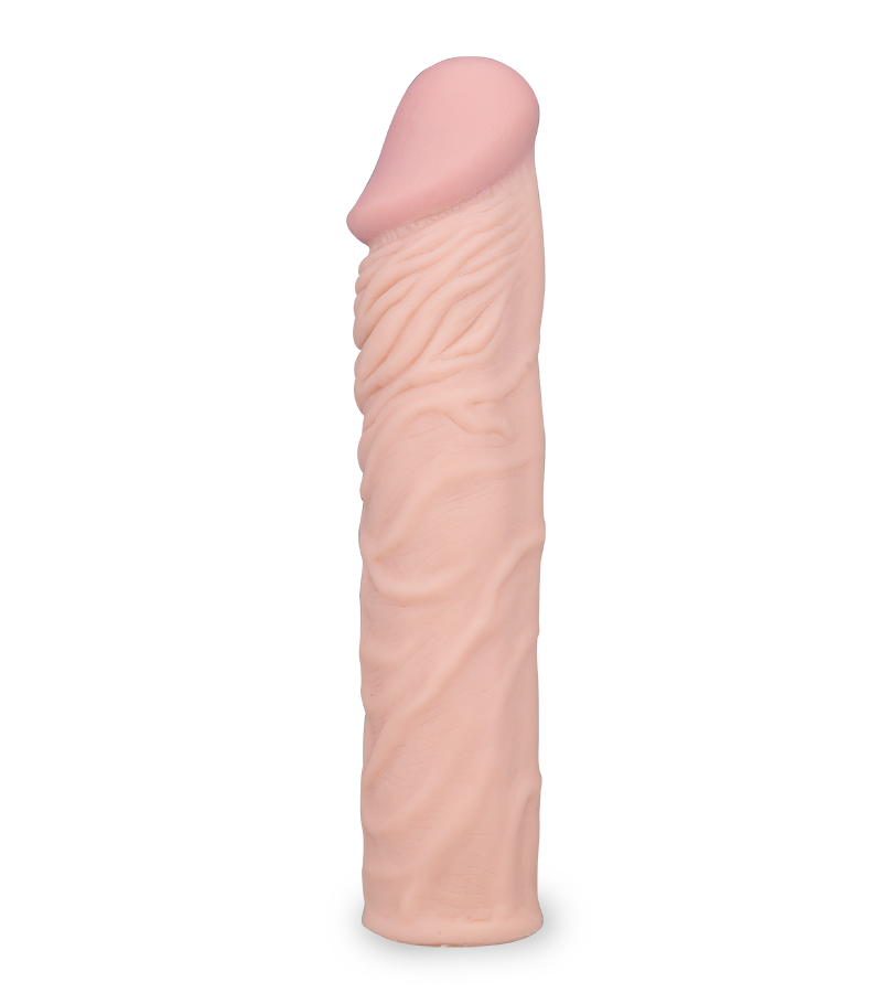 Avec sa longueur totale de 19,0 cm et sa longueur insérable de 14,0 cm, cet accessoire apporte 6,0 cm de longueur en plus au membre qui le porte. En plus de la longueur, l’épaisseur sera aussi augmentée, et ce, pour le plaisir du plus grand nombre puisque si le diamètre de la gaine est de 4,0 cm, le diamètre d’insertion est lui extensible.