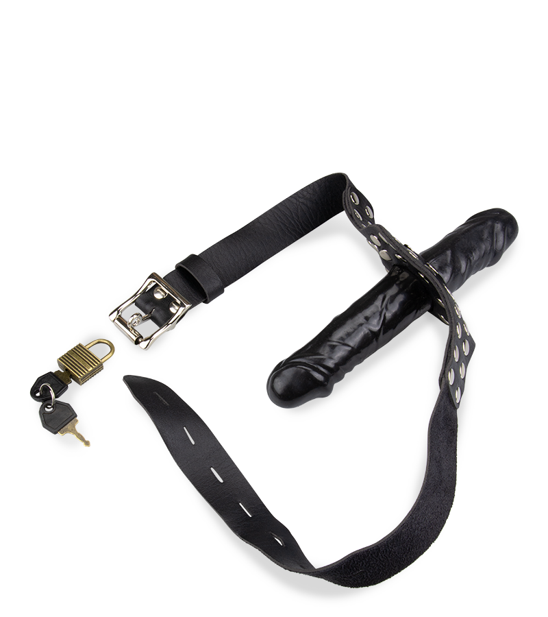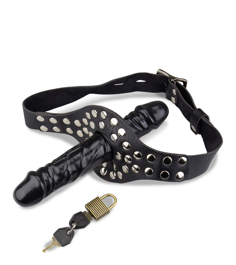 À l’aide d’un harnais réglable, fixez ce gode ceinture autour de votre tête et offrez à votre partenaire des sensations agréables. Il est même possible de le verrouiller avec un cadenas (un jeu de 2 clés est inclus) pour un plus grand effet de soumission.