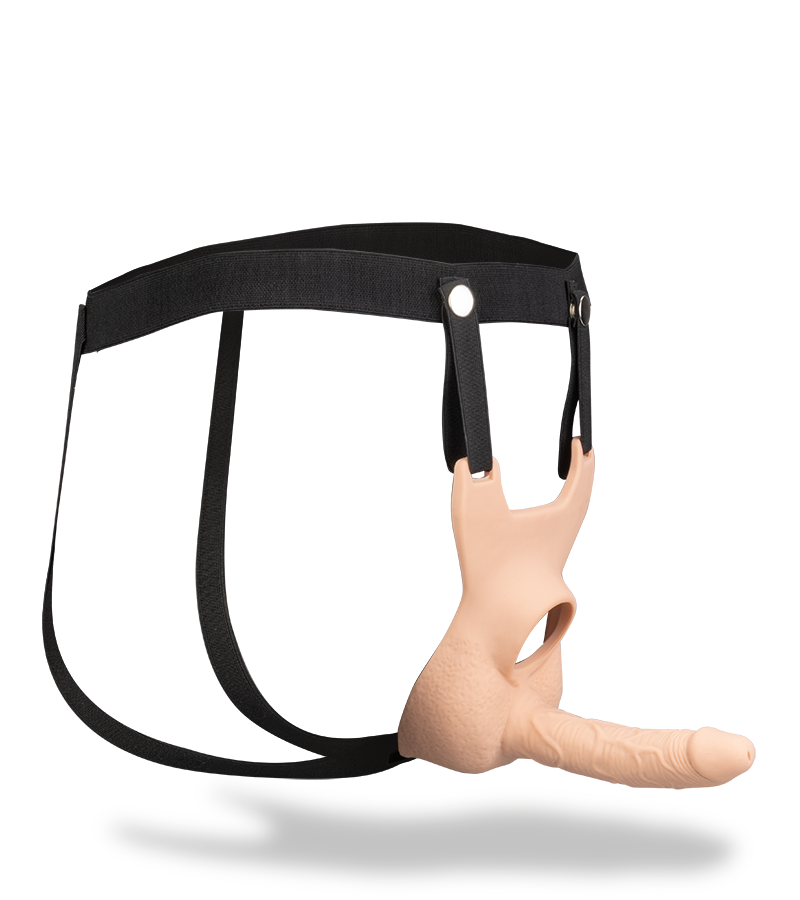 Attendez-vous à deux fois plus de plaisir avec le gode ceinture harnais double pénétration. Cet accessoire se compose d’un harnais élastique qui s’adapte à toutes les morphologies et auquel on ajoute une partie gode d’une longueur totale de 17,5 cm dont la partie insérable fait 13,0 cm et le diamètre 3,0 cm. Une fois le harnais bien installé, le pénis vient s’insérer dans le trou de 4,5 cm de diamètre prévu à cet effet.