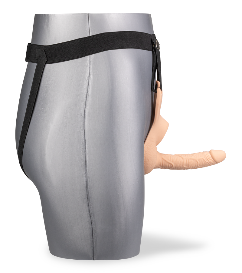 Ainsi, le pénis de celui qui porte le harnais s’ajoute au gode déjà présent et permet de pratiquer une double pénétration tout simplement parfaite qui ne laissera personne indifférent. Le gode en silicone possède des détails travaillés avec un gland et des veines apparentes. Sa souplesse permet une double pénétration vaginale, mais aussi anale.