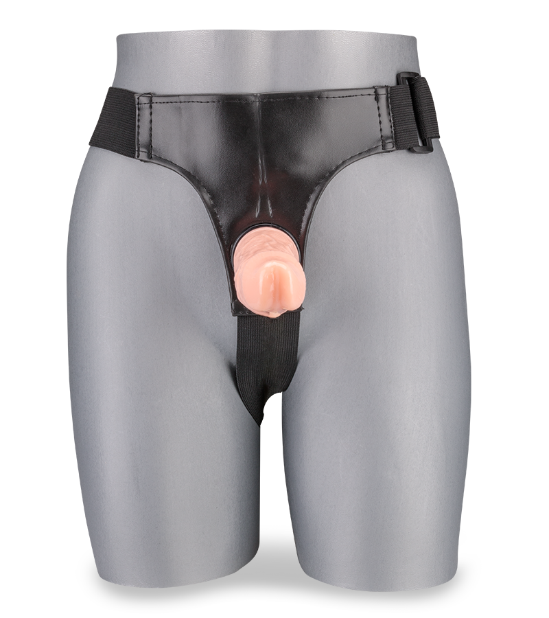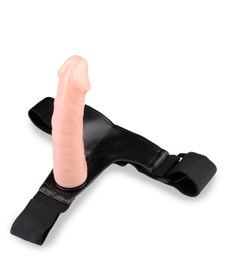 Le gode mesure 18,7 cm de longueur insérable pour 4,2 cm de diamètre au point le plus large. Le harnais est réglable afin d’être porté par toutes les morphologies.