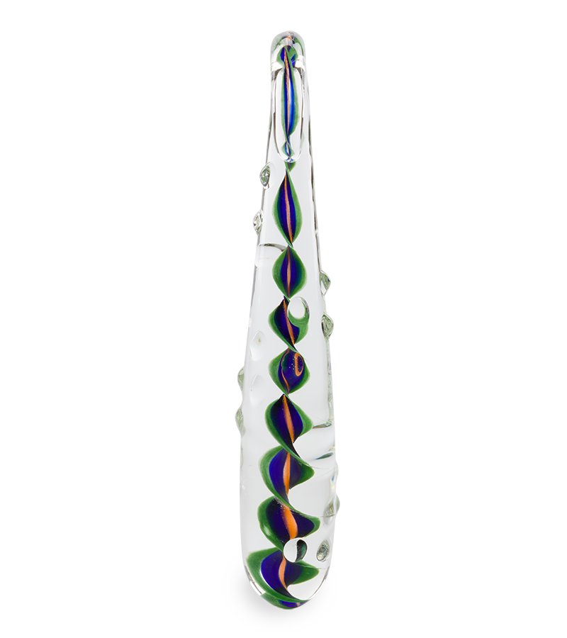 Avec sa forme tout en volutes, ce sextoy sera très facilement maniable pour atteindre le point G ou la prostate. Sa matière lisse et dense permet une insertion confortable et aisée tandis que les nodules présents sur sa surface caresseront sensuellement votre intimité. Son design a été soigné pour faire de ce gode un véritable objet esthétique qui vous séduira à coup sûr. Les godes en verre sont très simples à utiliser, facile d’entretien et il vous permettent aussi de jouer avec les températures en les trempant dans l’eau froide ou tiède avant utilisation. Alors sautez le pas et procurez-vous un sextoy en verre, vous ne le regretterez pas !
