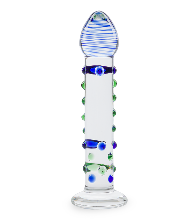 Les sextoys conçus en verre offrent une stimulation unique grâce à leur surface très lisse et à leur grande densité. L’insertion est facile et les massages sont plus appuyés pour un plaisir très intense. Ce modèle accentuera encore vos sensations grâce à sa tête large et à sa longueur recouverte de nodules colorées. Avec sa base large, vous pourrez expérimenter le sexe anal en sa compagnie sans prendre le risque de perdre votre gode, vous pourrez vous concentrer uniquement sur votre plaisir.