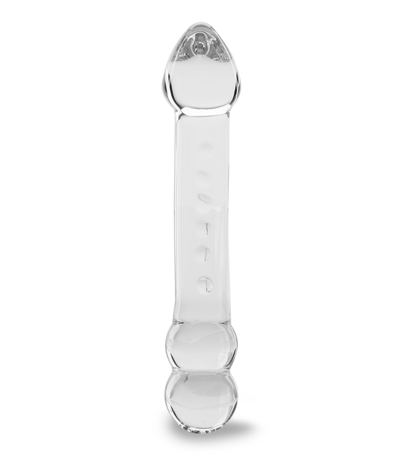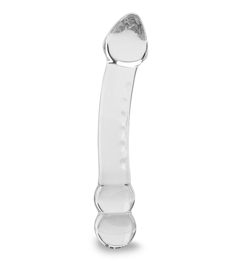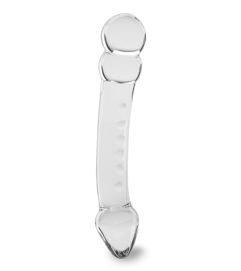 Ce sublime sextoy a de nombreux avantages grâce à sa conception en verre. Ce matériau hypoallergénique, facile à nettoyer et doux, vous permettra également de tenter de nouvelles expériences. Vous pourrez utiliser tout type de lubrifiant grâce à cette matière durable. Ce gode est totalement transparent et légèrement courbé, ce qui lui donne un aspect surprenant et séduisant. Les deux bouts sont ornés de deux boules d’un côté et d’un gland de l’autre, en plus de légers reliefs longeant un côté. Ces détails vous amèneront vers des sensations délicieuses. Accompagnez la pénétration d’un effet de chaud ou de froid en immergeant votre gode dans de l’eau (tiède ou froide) avant de l’utiliser. Une impression de fraicheur ou de chaleur sera des plus agréables dans votre intimité et vous en redemanderez !