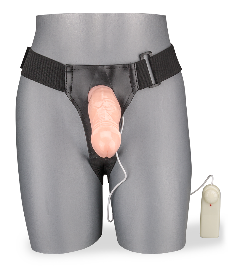 Pénétrez plus intensément que jamais avec le gode harnais creux vibrant diamètre XL !