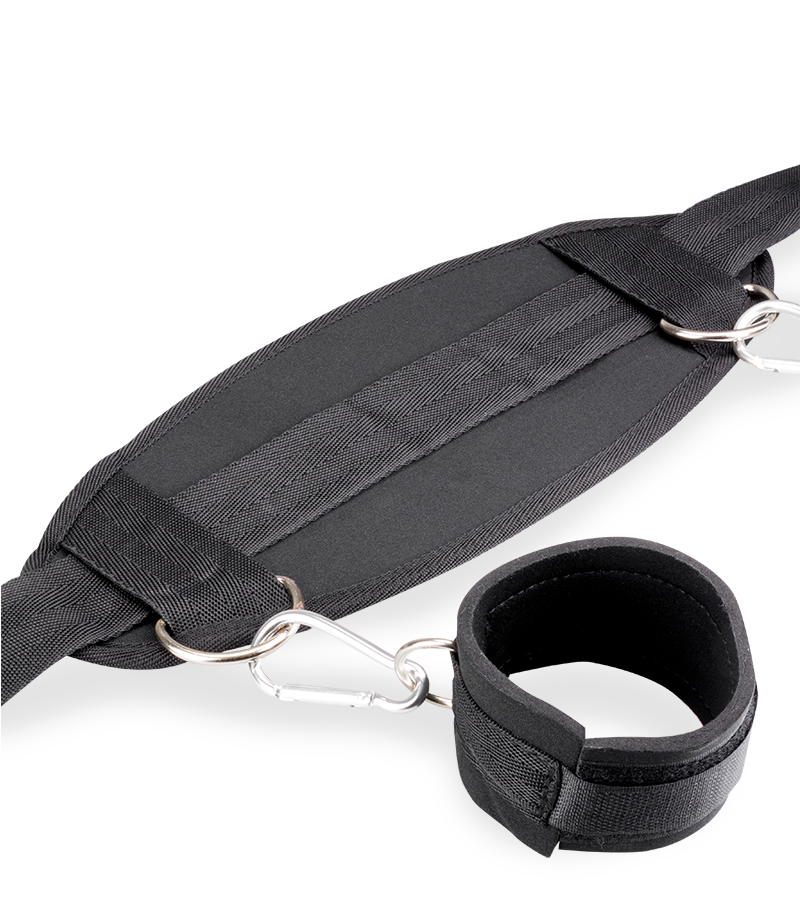 Cet accessoire BDSM permet de maintenir votre partenaire dans une position très suggestive : sur le ventre, les mains contre la poitrine et les jambes en l’air écartées. Vous pourrez ainsi profiter pleinement de son corps et sans retenue, mais toujours avec son consentement.