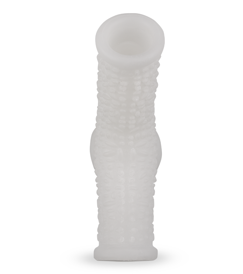 Ce manchon de pénis est conçu en TPE, il est extensible, doux et très confortable à porter. La partie la plus longue est à enfiler autour du pénis tandis que la plus courte est à placer autour des testicules. Les vibrations générées et les nodules présents sur toute la longueur de la gaine masseront l’intimité de votre partenaire pour lui faire découvrir des sensations totalement inédites et intenses. De plus, cette gaine exercera une légère pression sur votre intimité tout en limitant la surface de contact avec votre partenaire. Vos orgasmes seront ainsi repoussés et vos rapports plus longs.