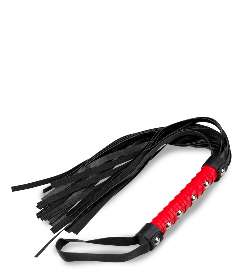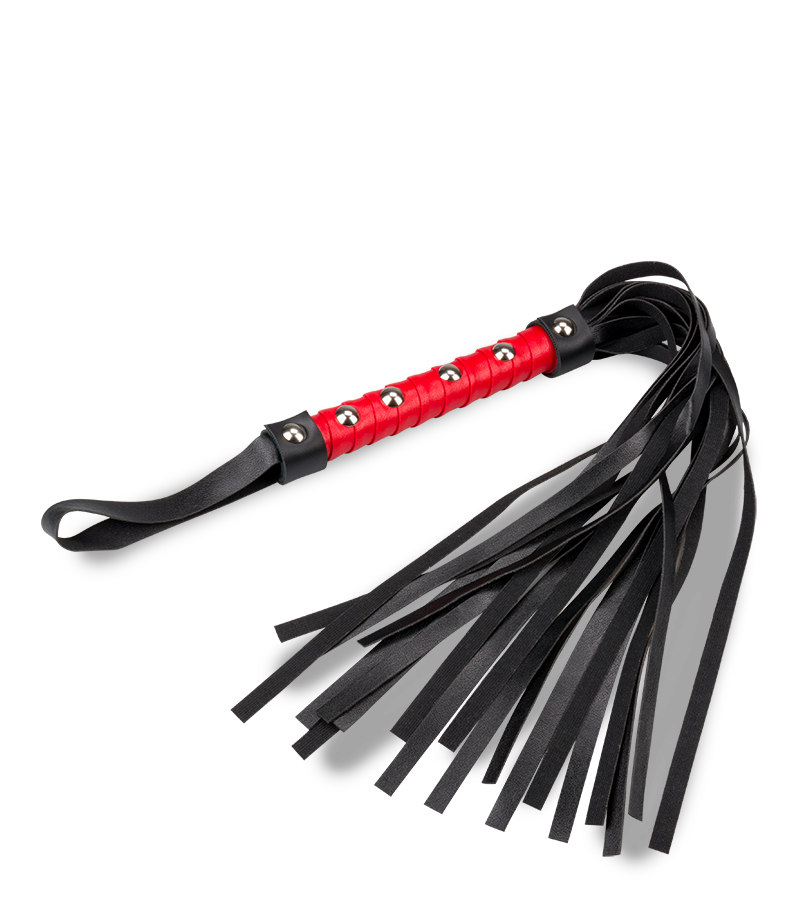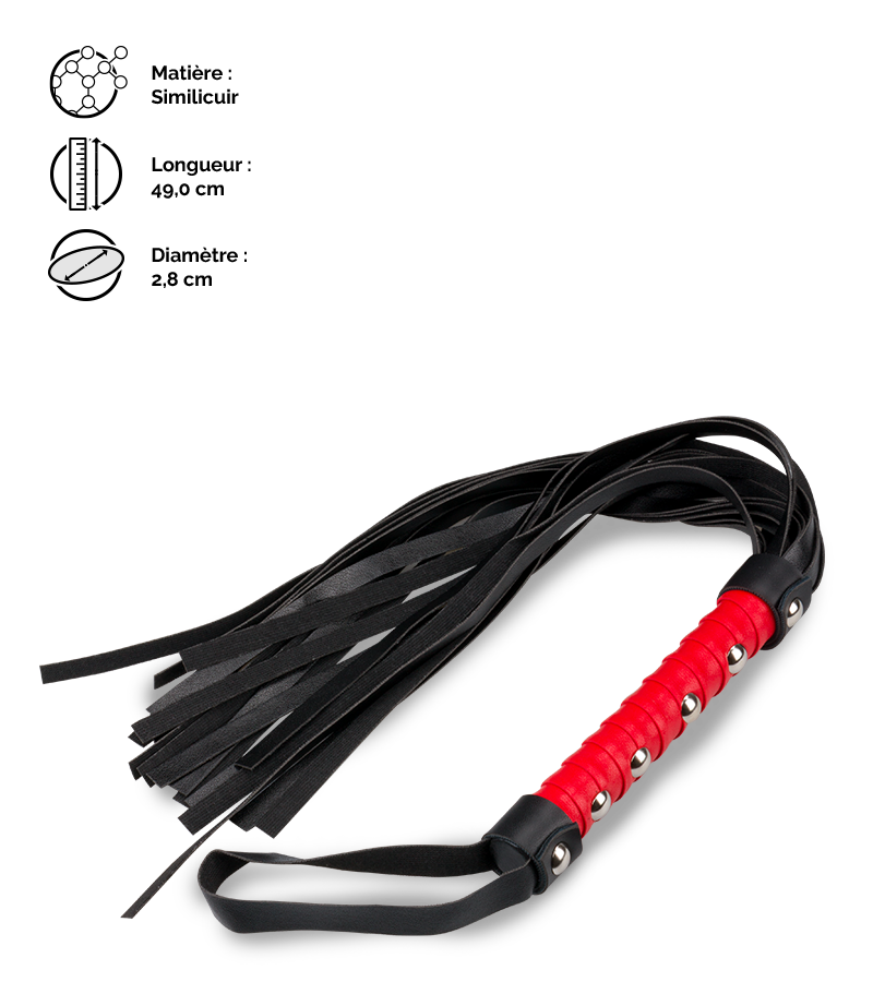 Entièrement conçu en similicuir, de la dragonne aux lanières en passant par le manche, cet objet est tout simplement parfait pour les personnes qui aiment s’adonner aux joies des plaisirs BDSM. Ce martinet permet à son possesseur de porter des coups de l’intensité de son choix sur son soumis qui n’aura d’autre choix que d’obéir face à la menace que constitue cet accessoire au design et aux finitions travaillées. Le martinet BDSM Guilty possède une longueur totale de 49,0 cm dont un manche clouté de 16,0 cm avec un diamètre de 2,8 cm. De plus, il est équipé d’une dragonne afin de ne jamais perdre le contrôle de la situation.