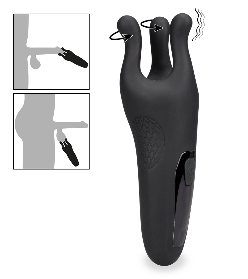 Ce sextoy original a été conçu pour vous offrir des massages jouissifs grâce à ses trois branches. Une branche est vibrante tandis que les deux autres effectuent des petites rotations. Placez votre gland ou vos testicules entre ces branches et laissez-vous surprendre par le plaisir que cette stimulation vous procure.